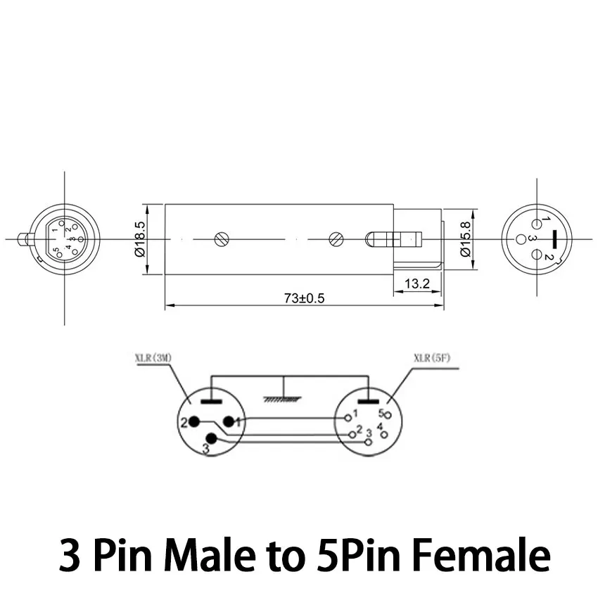 Tipo de interfaz: macho de 3 pines a hembra de 5 pines; hembra de 3 pines a macho de 5 pines