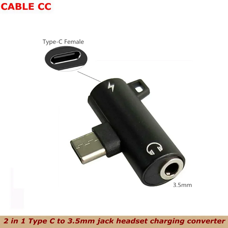 Comprar Convertidor de carga de auriculares, Adaptador de audio hembra USB tipo C, 1 unidad/2 en 1, conector giratorio de 3,5mm, adecuado para Xiaomi y Huawei