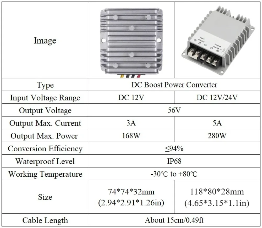 Convertidor de CC, transformador de 12V/24V a 56V, cargador de energía 3A 5A, regulador de potencia de refuerzo automático, módulo de suministro de voltaje elevador para coche