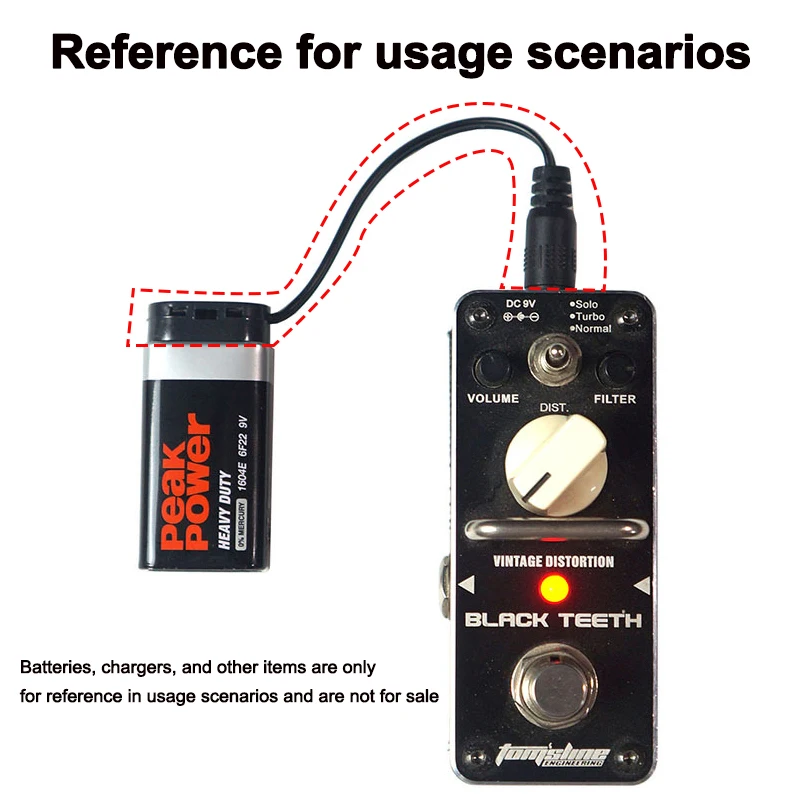▲Función:Conecte una batería de 9 V para alimentar un pedal de efectos sin batería