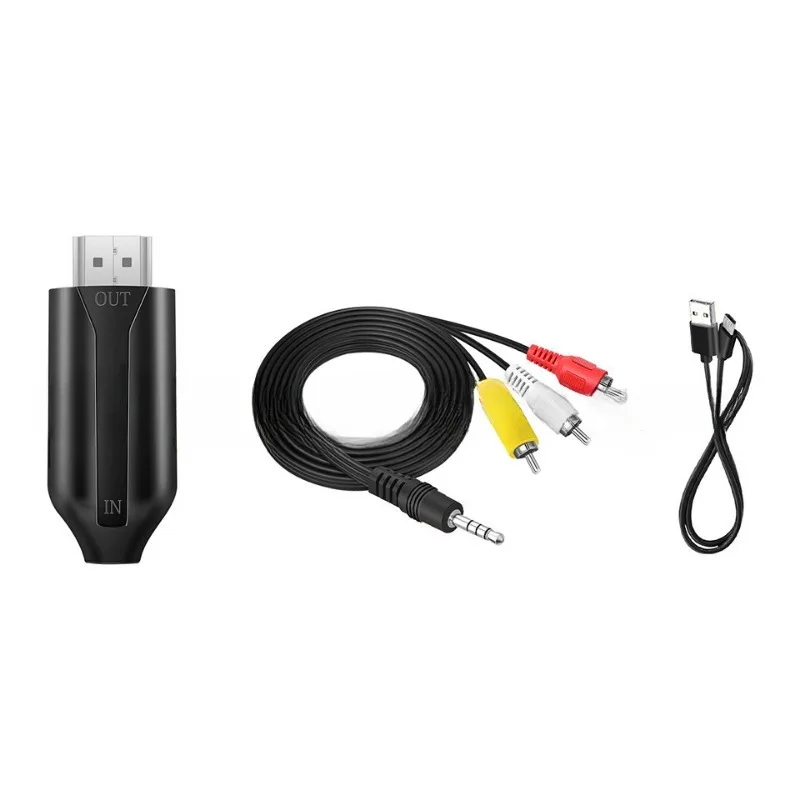 Puntos de venta del productoConvertidor AV a HDMI: convierte la entrada analógica compuesta RCA (amarillo, blanco, rojo) en salida HDMI 720P/1080P (60HZ), que se muestra en HDTV/monitor.Nota: ¡Entradas RCA solo para salida HDMI!Conector RCA macho y conector HDMI macho, ¡plug and play!No es necesario comprar cables de conexión adicionales, lo que ahorra costos.Adaptador rca a hdmi, puerto de entrada RCA compatible con videocámara VHS/VCR/SNES/Sega Gear, PS2/3.El puerto de salida HDMI admite la mayoría de los dispositivos de visualización HD, como monitores, proyectores y televisores de alta definición;Longitud del cable convertidor de cable rca a hdmi 1 m/3,2 pies.Equipado con un cable de alimentación USB (45 cm), es necesario conectar el cable de alimentación cuando se usa.