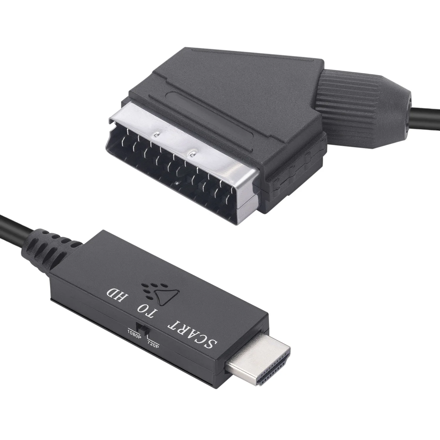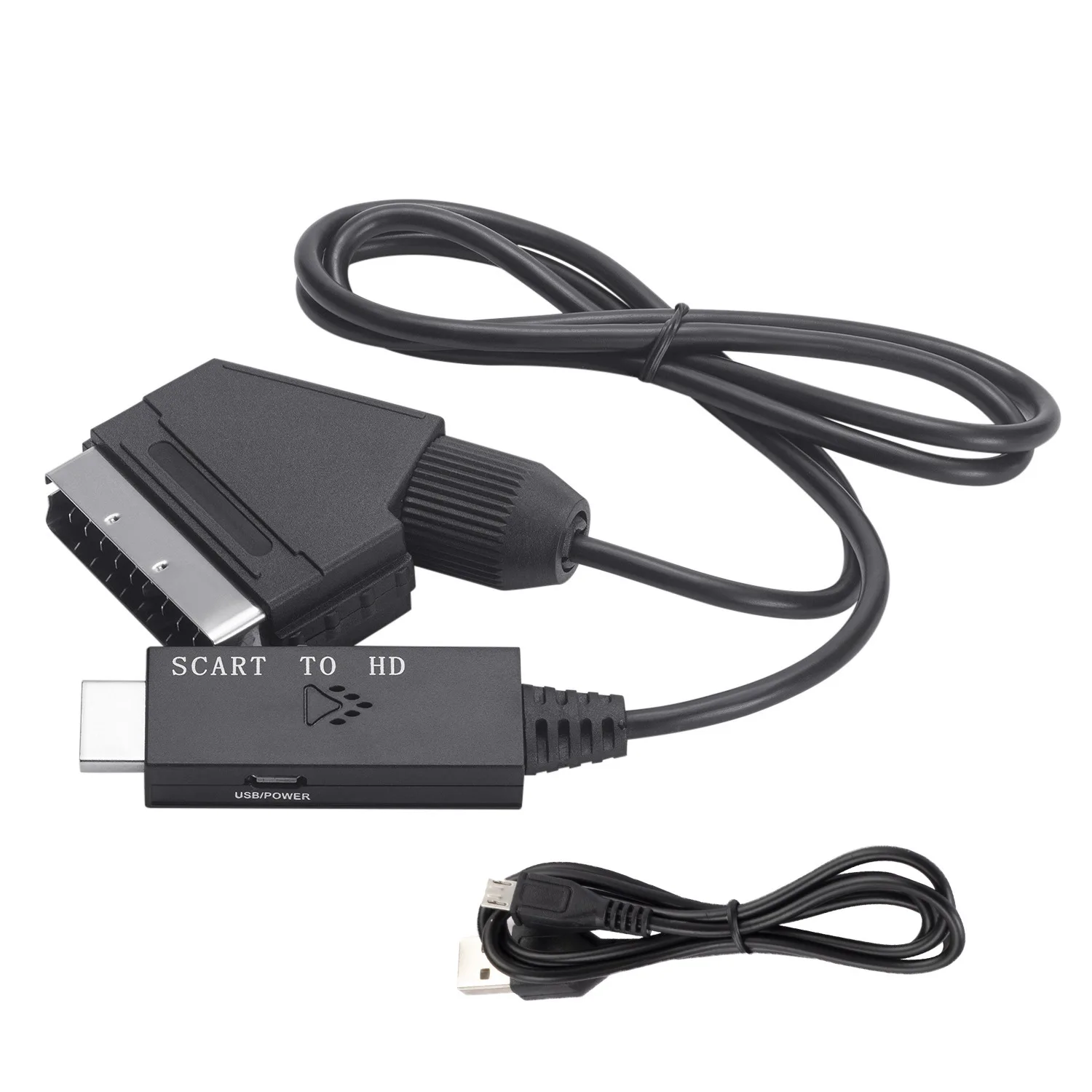 Adaptador convertidor de 1m, 1080P, convertidor de Audio y vídeo, compatible con Scart a HDMI, accesorios de Cable Micro USB DC 5V para HDTV/DVD