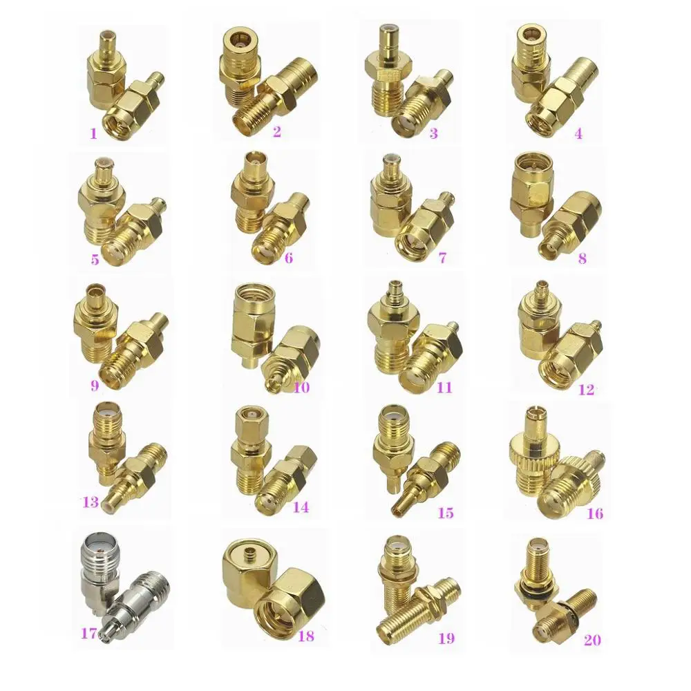 Convertidor de conector adaptador coaxial RF, conector macho y hembra, SMA a SMB / MCX / MMCX / SMC / CRC9 / TS9 / SMA / IPX U. FL, 1 piezas
