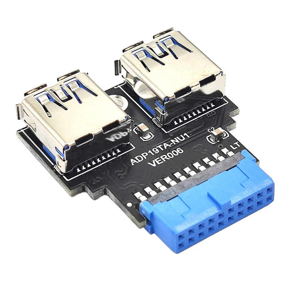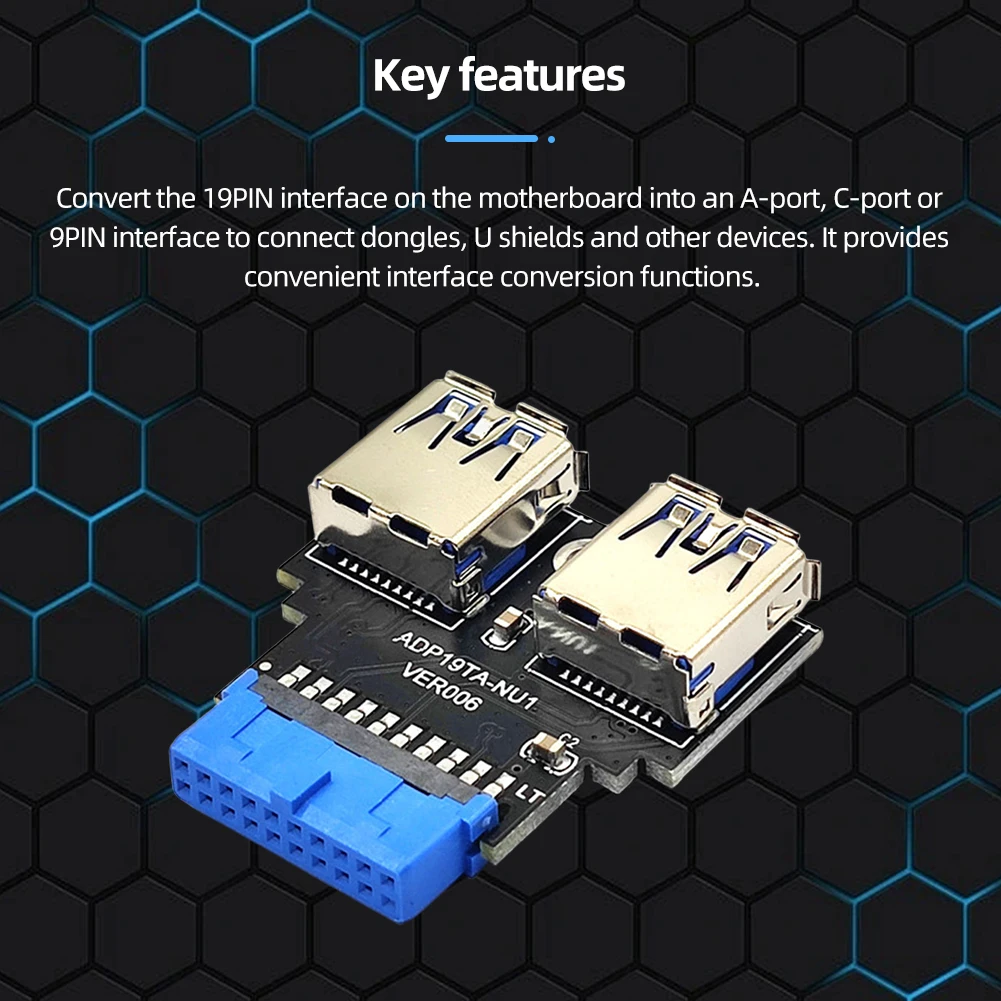 Conector frontal hembra doble USB A de 19 pines a tipo C, conector hembra de 19 pines a doble USB 3,0 A tipo C para WIN XP/7/8/LINUX/MAC