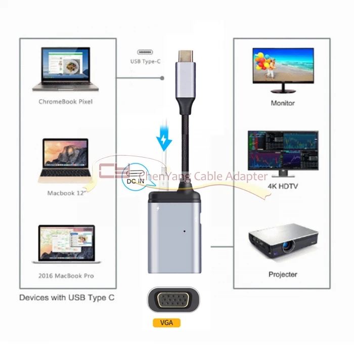 Comprar Convertidor CY USB-C tipo C a VGA RGB, adaptador HDTV 60hz 1080p con puerto de alimentación PD hembra