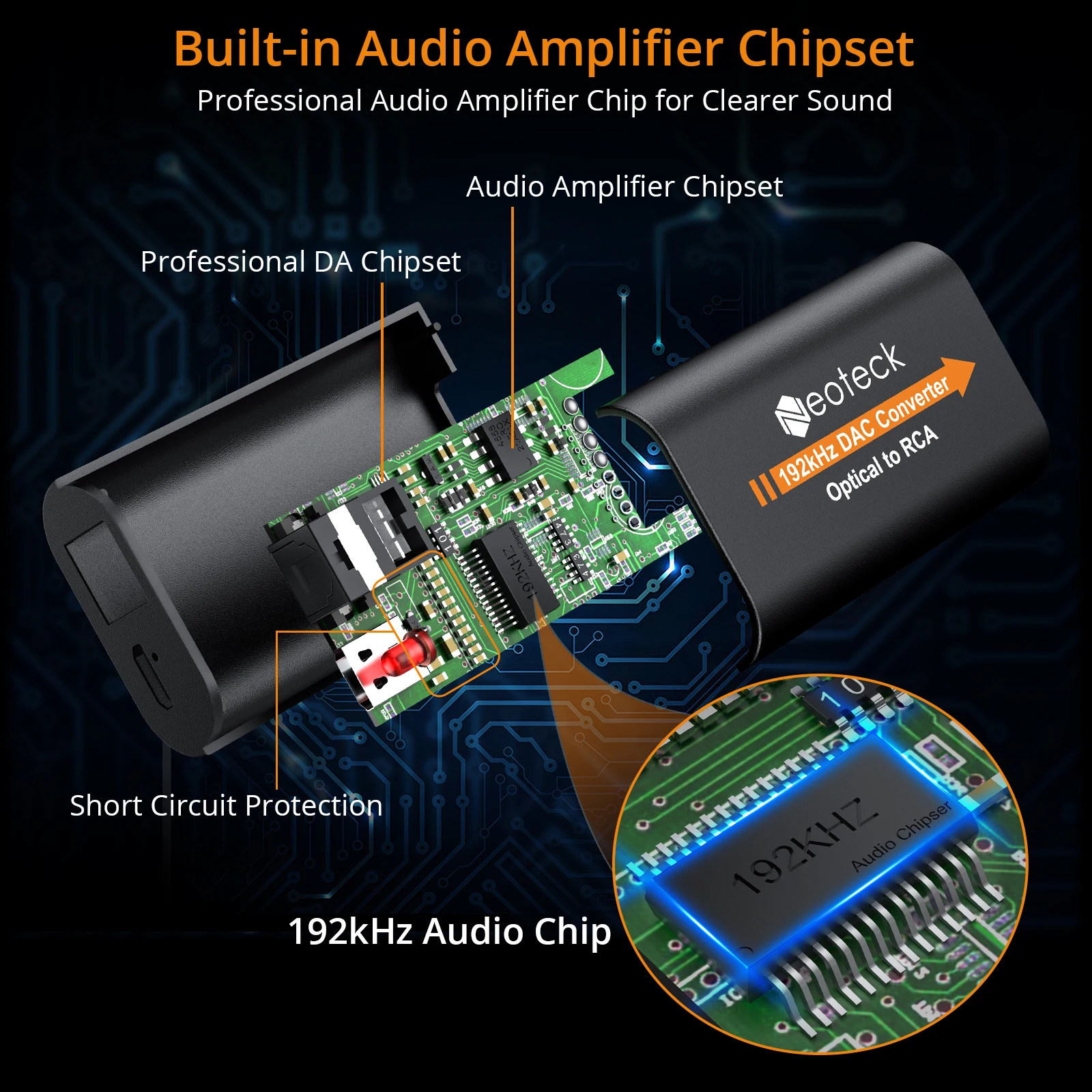 Comprar Convertidor DAC de 192kHz Neoteck SPDIF a RCA Convertidor de audio digital a analógico Toslink óptico al Adaptador de audio RCA