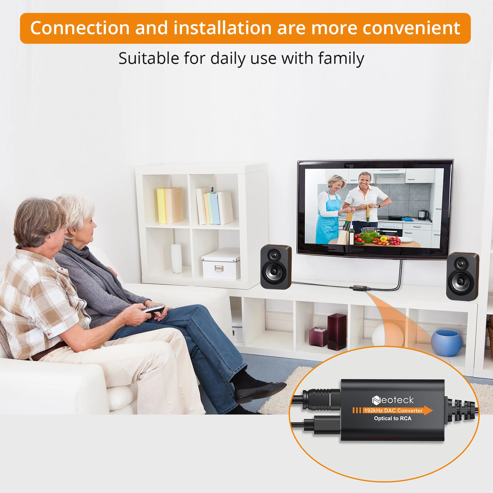 192kHz DAC está diseñado para el procesamiento de señal de audio profesional. Puede convertir fácilmente la interfaz óptica SPDIF a la interfaz de audio analógica RCA para amplificador estéreo.
