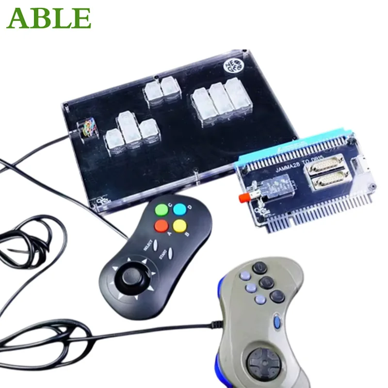 Es adecuado para usar varios teclados, manijas y joysticks DB15 pin en el marco arcade, especialmente para los jugadores que aman pelear con teclado. La imagen muestra el diseño de apilamiento de carcasa acrílica de 4 capas, que es hermoso y fuerte. Este convertidor también se puede utilizar como placa de conmutación JAMMA28, con un diseño de interruptor de alta corriente. El marco se puede reemplazar sin cambiar la fuente de alimentación del marco y hay una interfaz de 6 teclas de Street Fighter en el lateral.