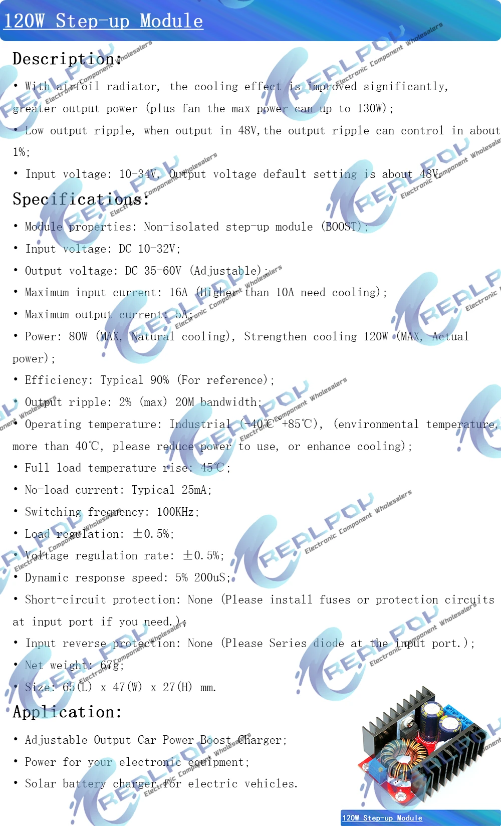 Convertidor de DC-DC, módulo de fuente de alimentación Boost, 10-32V, hasta 35-60V, 120W