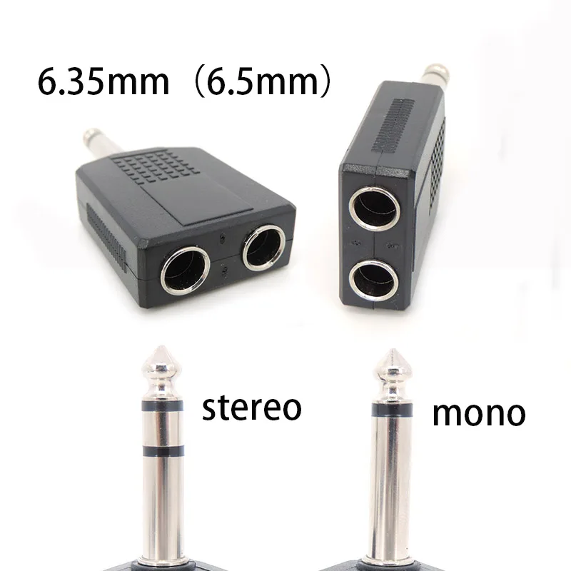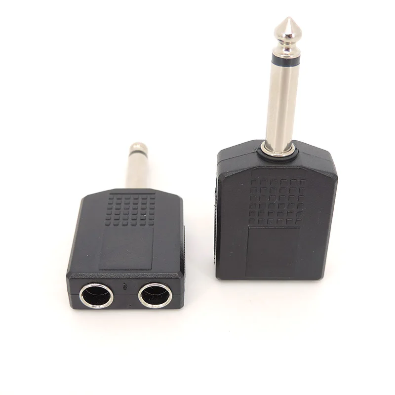 6.35mm macho a 6.35 doble hembra 6,5mm 1/4" adaptador de enchufe de Audio estéreo mono conector de micrófono convertidor divisor Y