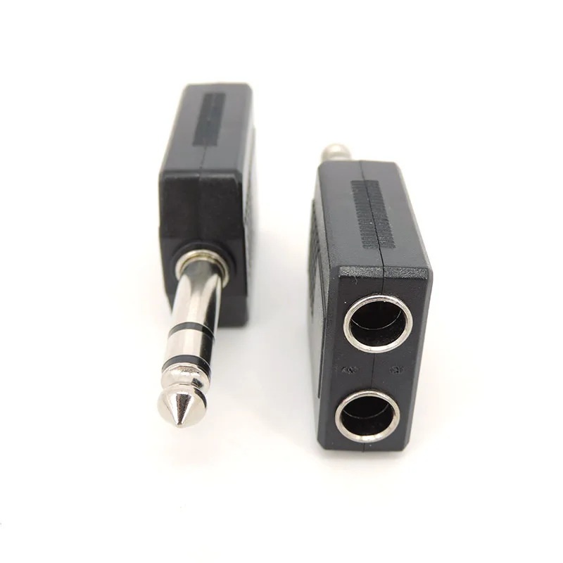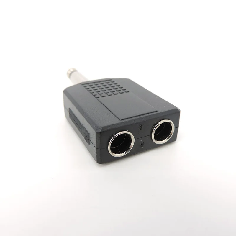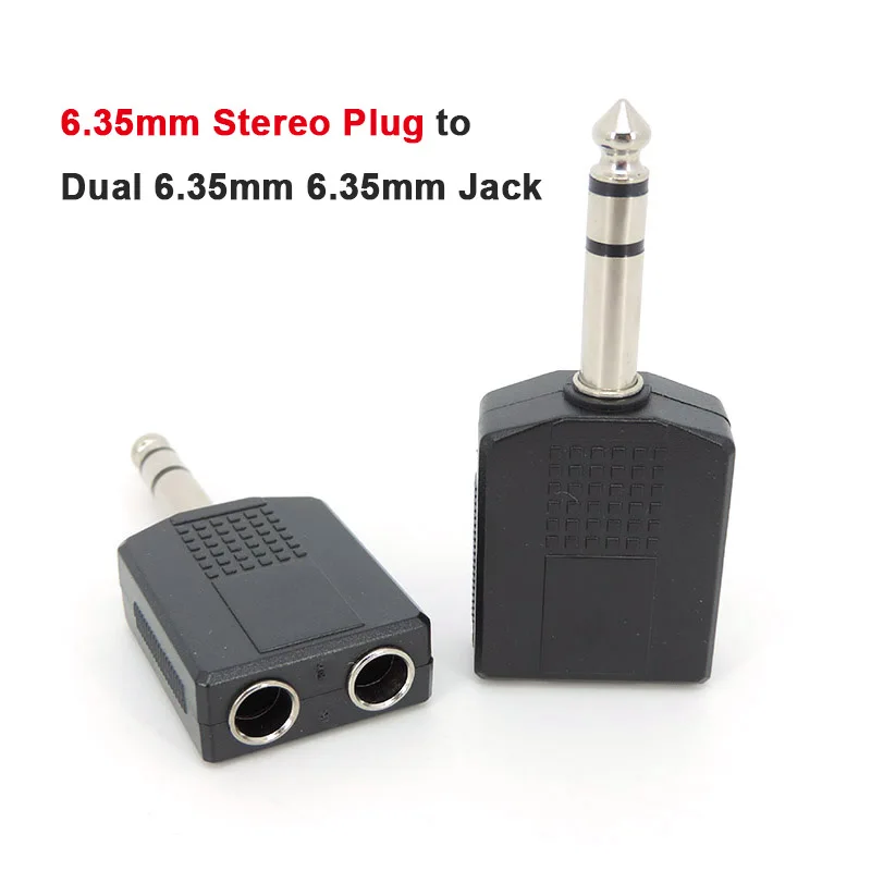 Este gran Adaptador de audio puede convertir enchufes dobles mono de 6,35mm en un solo enchufe mono de 6,35mm. Puede dividir estéreo macho de 6,35mm a conectores duales hembra de 6,35mm. Este adaptador de audio es de plástico moldeado negro con contactos niquelados. Es fácil de usar y cómodo de llevar. ¡Un gran Adaptador de audio utilizado con PC, estéreo, reproductores de MP3.