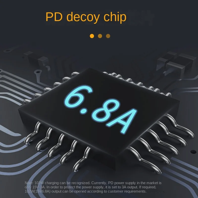 4. Usando el chip de señuelo PD. Corriente de 6.8A, añadida a la era de la carga rápida, para resolver el problema de la compatibilidad del modelo y el rendimiento estable.