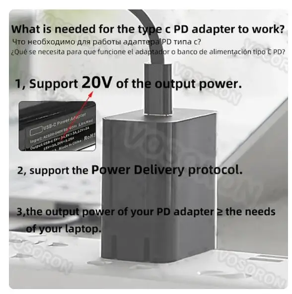 4. La potencia de salida de su adaptador PD tipo c no debe ser inferior a las necesidades de su computadora portátil.