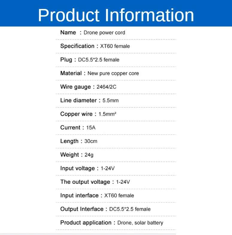 Nombre del producto: Cable hembra DC5525 a hembra XT60