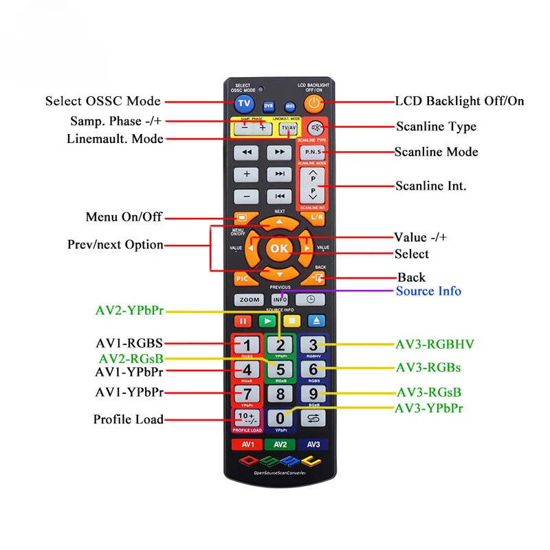 -Soporte para 240p, 480i, 288p, 576i, 384p, 480p, 576p.A diferencia de otros escaladores, como el XRGB Mini, OSSC funciona en una sola línea de escaneo en lugar de un cuadro a la vez, lo que significa que no hay retardo de entrada.Convierta SCART y componente a compatible con DVI/HDMI.