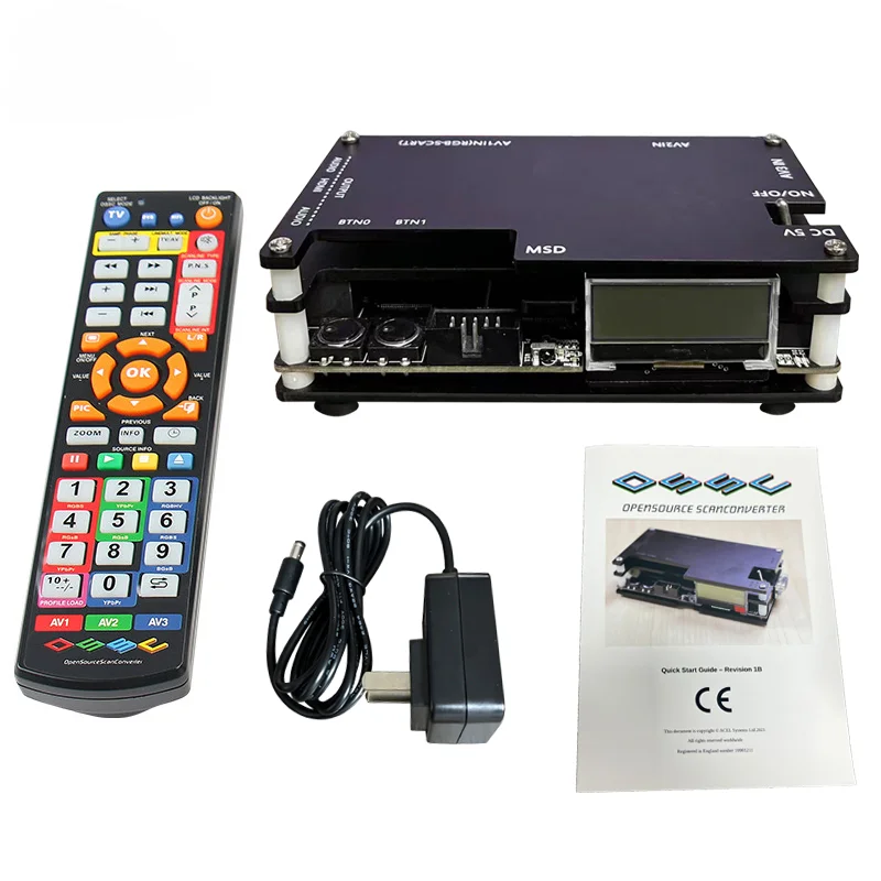 El convertidor de escaneo de código abierto es un digitalizador de video y un convertidor de escaneo de baja latencia diseñado principalmente para conectar consolas de videojuegos retro y computadoras domésticas a pantallas modernas.Convierte señales analógicas RGB o de vídeo componente en un formato digital y duplica (o triplica) las líneas de escaneo de un solo fotograma si es necesario para generar un modo válido para televisores o monitores digitales.