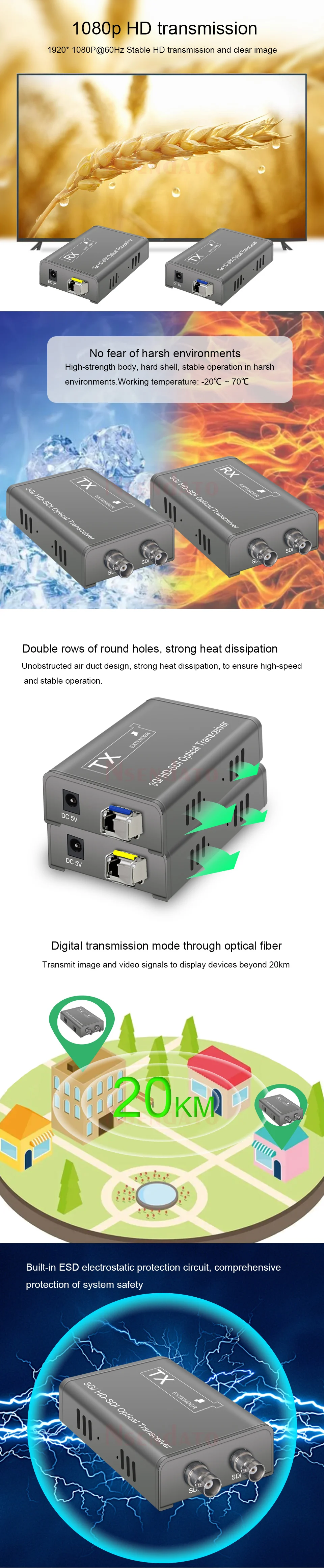 Convertidor extensor de fibra óptica 1080P 3G HD SDI 20 km Local SDI Loop Out BNC Señal Coaxial Óptica Salidas SDI duales para Monitor DVD