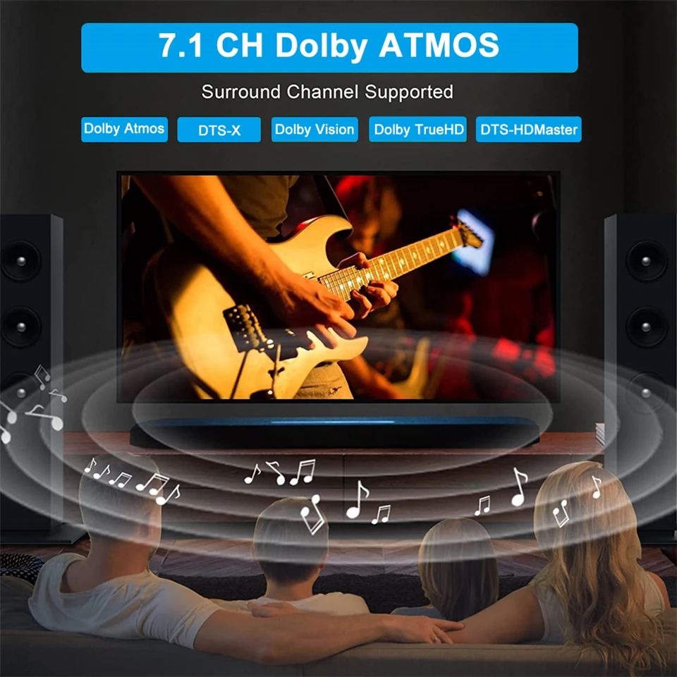 Navceker HDMI Audio De-embedding compatible con LPCM 7.Formato de audio 1CH, Dolby True -HD,DTS -HD,AC 3,DTS,DSD, Dolby Digital Plus y Dolby Atmos, pero no se pueden decodificar estos formatos de audio.Si su amplificador o barra de sonido no admite estos formatos de audio, no habrá salida de audio de su barra de sonido o amplificador.En esta situación, configure el formato de audio en PCM/LPCM en su fuente HDMI.