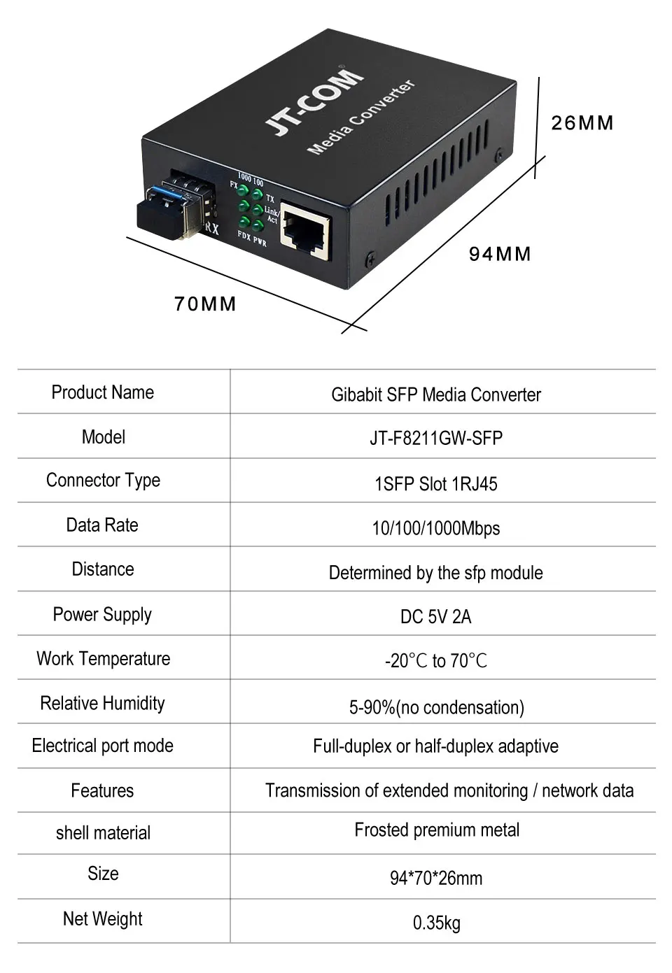 Comprar Convertidor de fibra óptica de 1Gb SFP a RJ45, conmutador de fibra SFP de 1000Mbps con módulo SFP Compatible con Cisco/Mikrotik/Huawei
