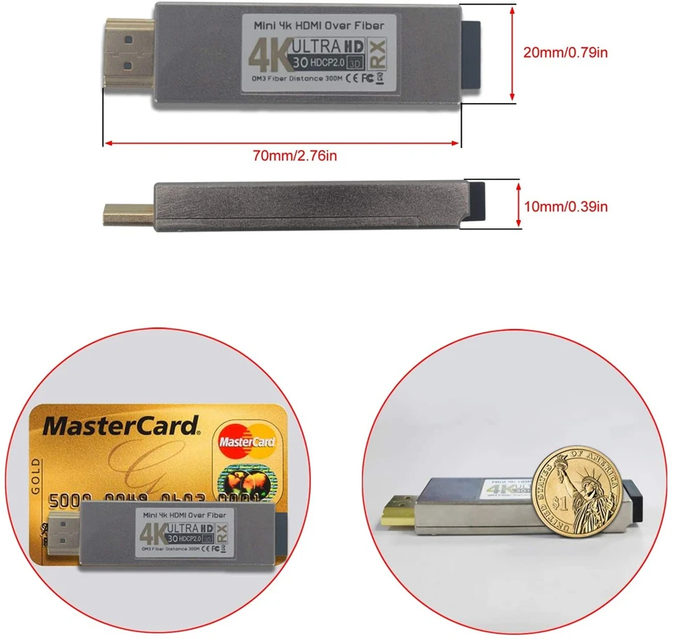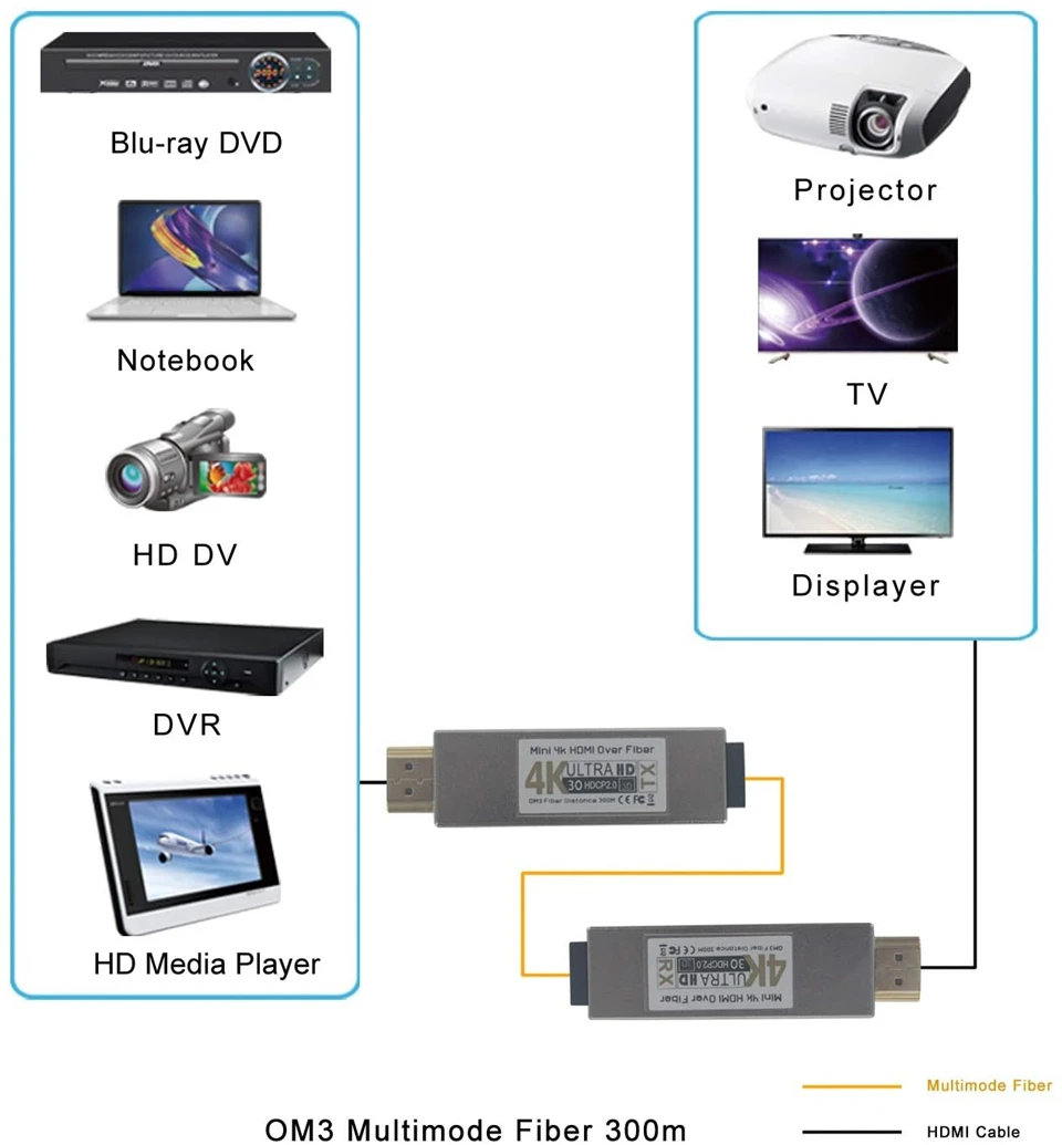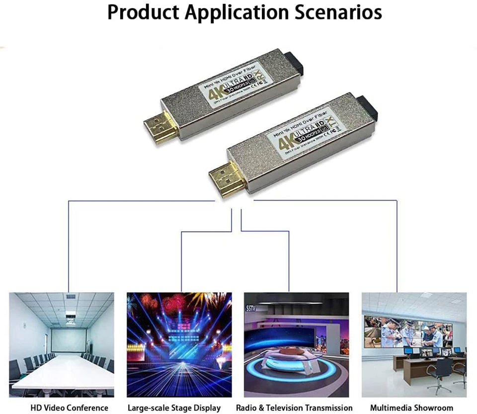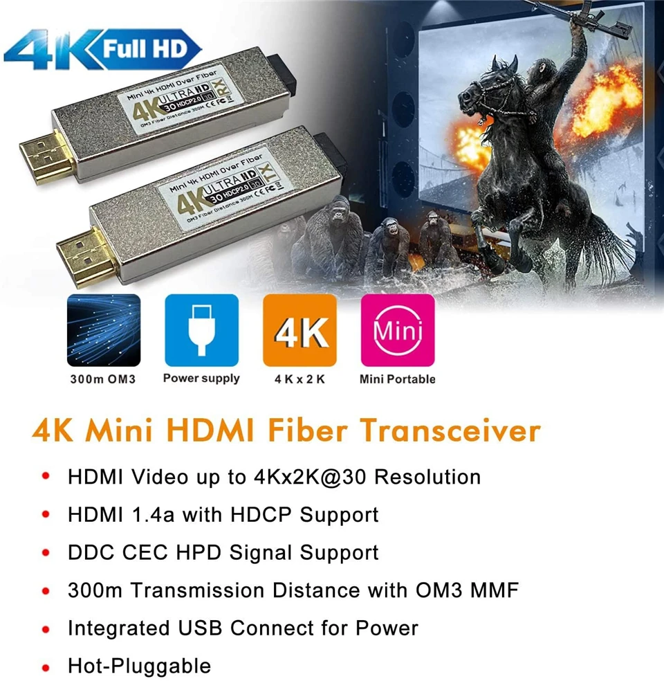 Comprar Convertidor de fibra óptica 4K Mini, transmisor extensor de fibra óptica sin pérdida de retardo, HDMI 300 v sobre Cable multimodo OM3, 1,4 m