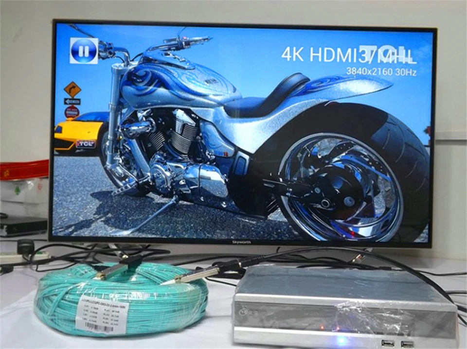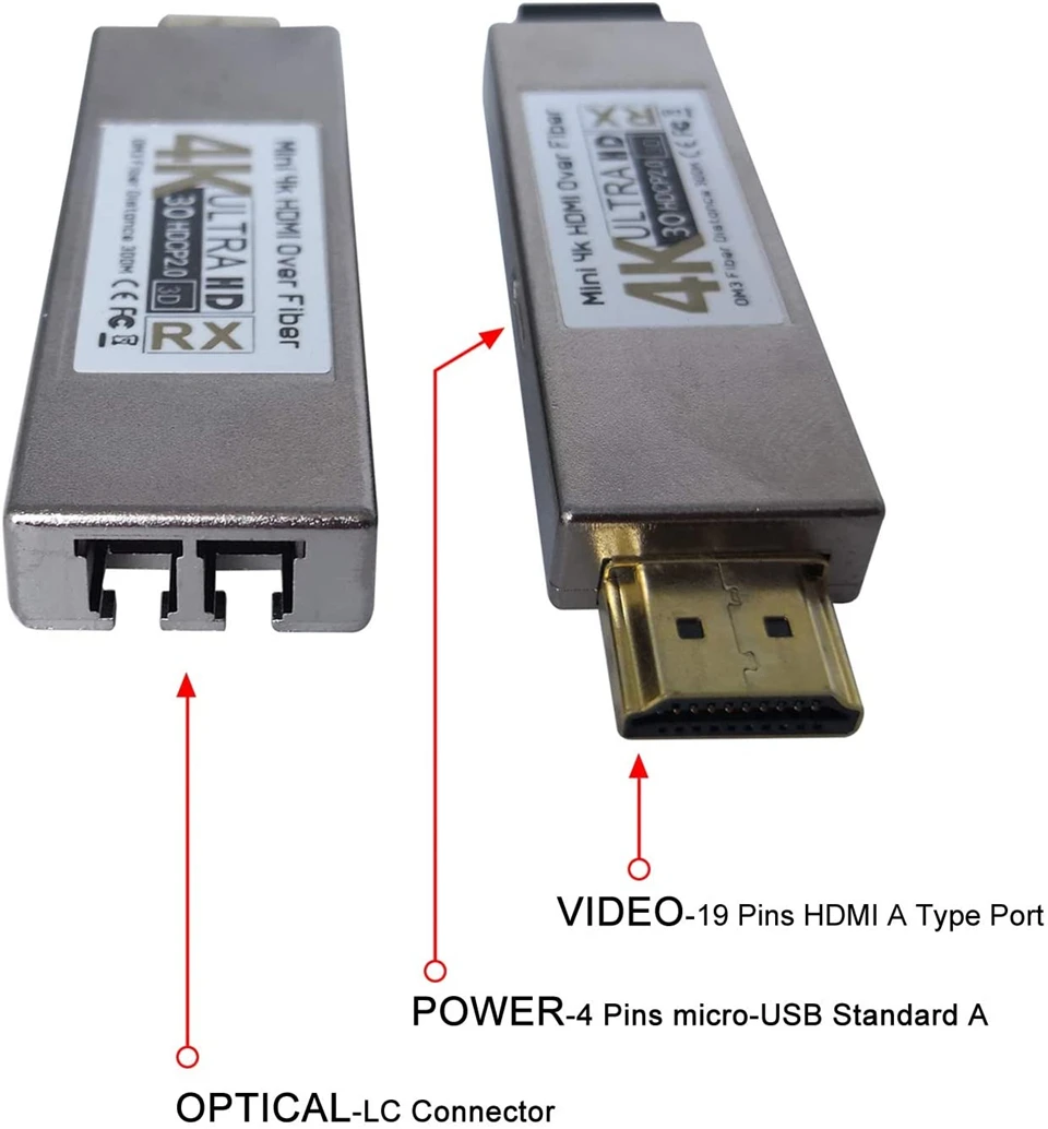 Los módulos ópticos HDMI están diseñados para admitir la transmisión de una señal HDMI 1.4A sin pérdidas sin comprimir a través de fibra óptica multimodo a 850nm, hasta una distancia de 300m, con una resolución de 4K x 2K @ 30HZ. Convierte una señal HDMI en un solo flujo de datos en serie de 10 Gb/s para la transmisión a través de dos fibras ópticas. Convierte de nuevo los datos seriales en una señal HDMI. Los transceptores cumplen con RoHS y no tienen plomo según los requisitos en Europa y China.