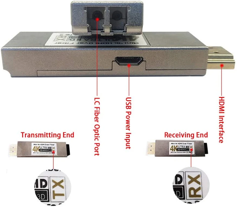 Comprar Convertidor de fibra óptica 4K Mini, transmisor extensor de fibra óptica sin pérdida de retardo, HDMI 300 v sobre Cable multimodo OM3, 1,4 m