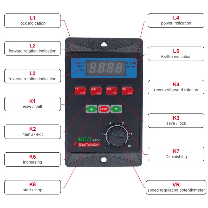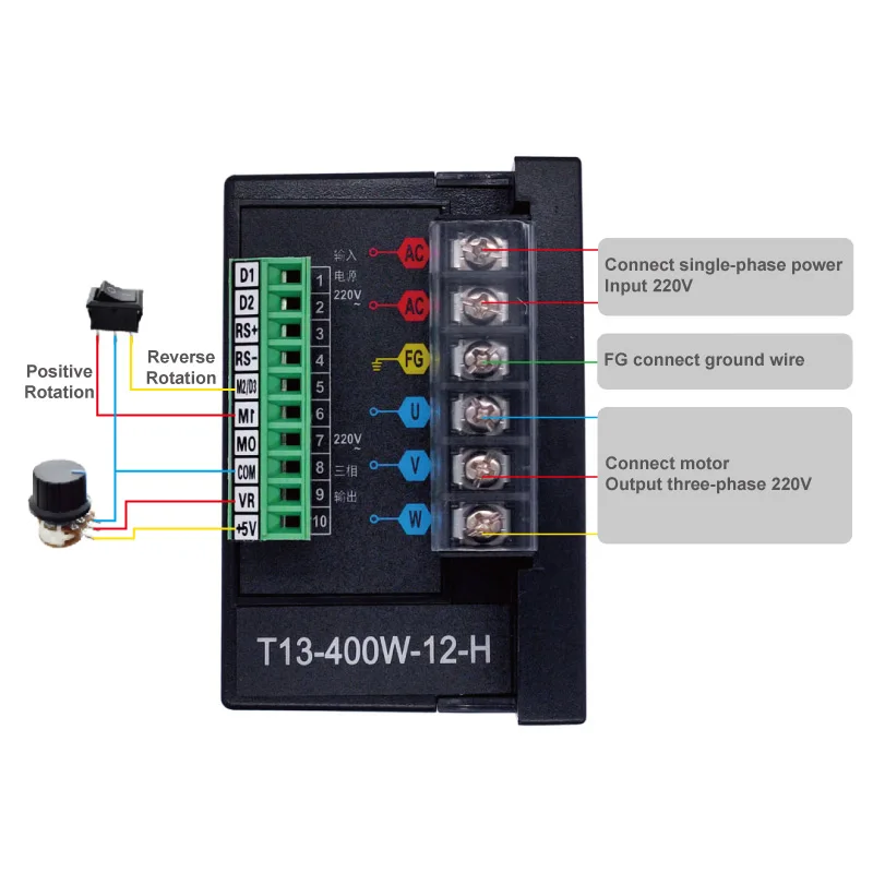 Este producto tiene entrada monofásica de 220 V y salida trifásica de 220 V.Explicación de palabras comunes:Salida única de entrada única de 220 V: entrada monofásica de 220 V, salida monofásica de 220 V.Hay dos cables del motor, capacitancia simple o capacitancia doble en el motor.220 V simple en tres salidas: entrada monofásica de 220 V, salida trifásica de 220 V.Hay dos cables del motor y no hay condensador en el motor.380 V tres en tres salidas: entrada trifásica de 380 V, salida trifásica de 380 V.Hay tres cables del motor.220 V a 380 V entrada y tres salidas únicas: entrada monofásica de 220 V, salida trifásica de 380 V. Tres cables de motorComprar Convertidor de frecuencia de entrada monofásico de 750W MCU T13-400W-12-H agregar controlador de motor trifásico RS485 de 400W