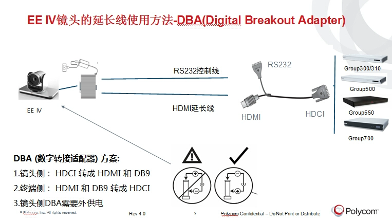 Polycom HDCI a DB9 convertidor DBA extensor de Cable de lente de cuarta generación