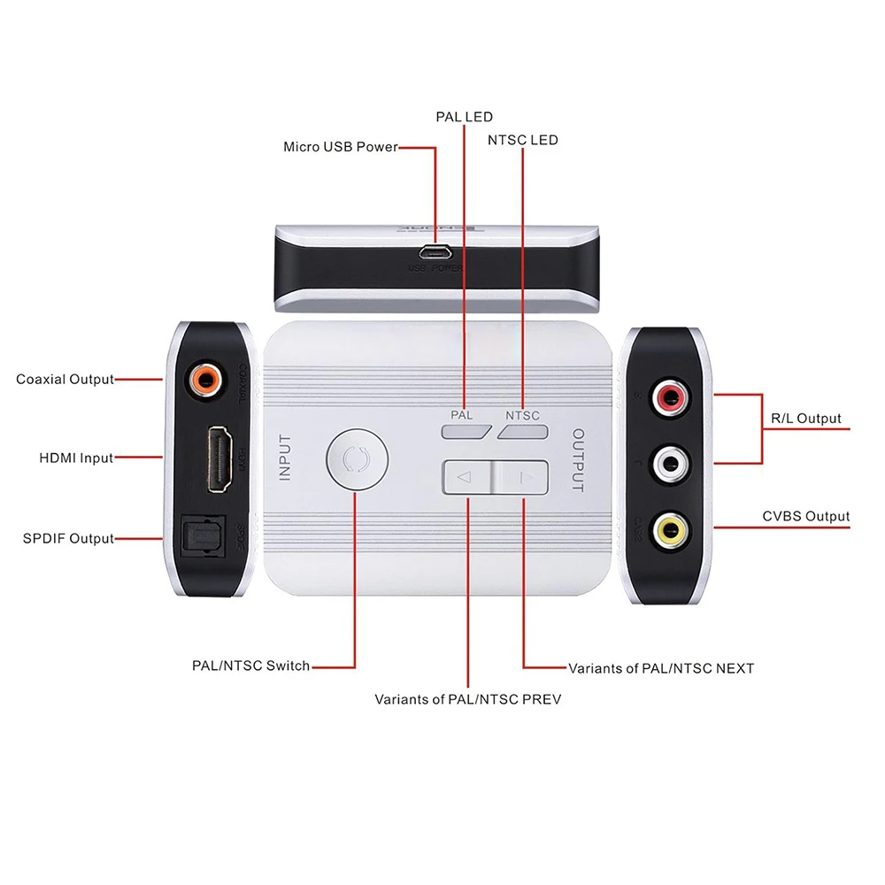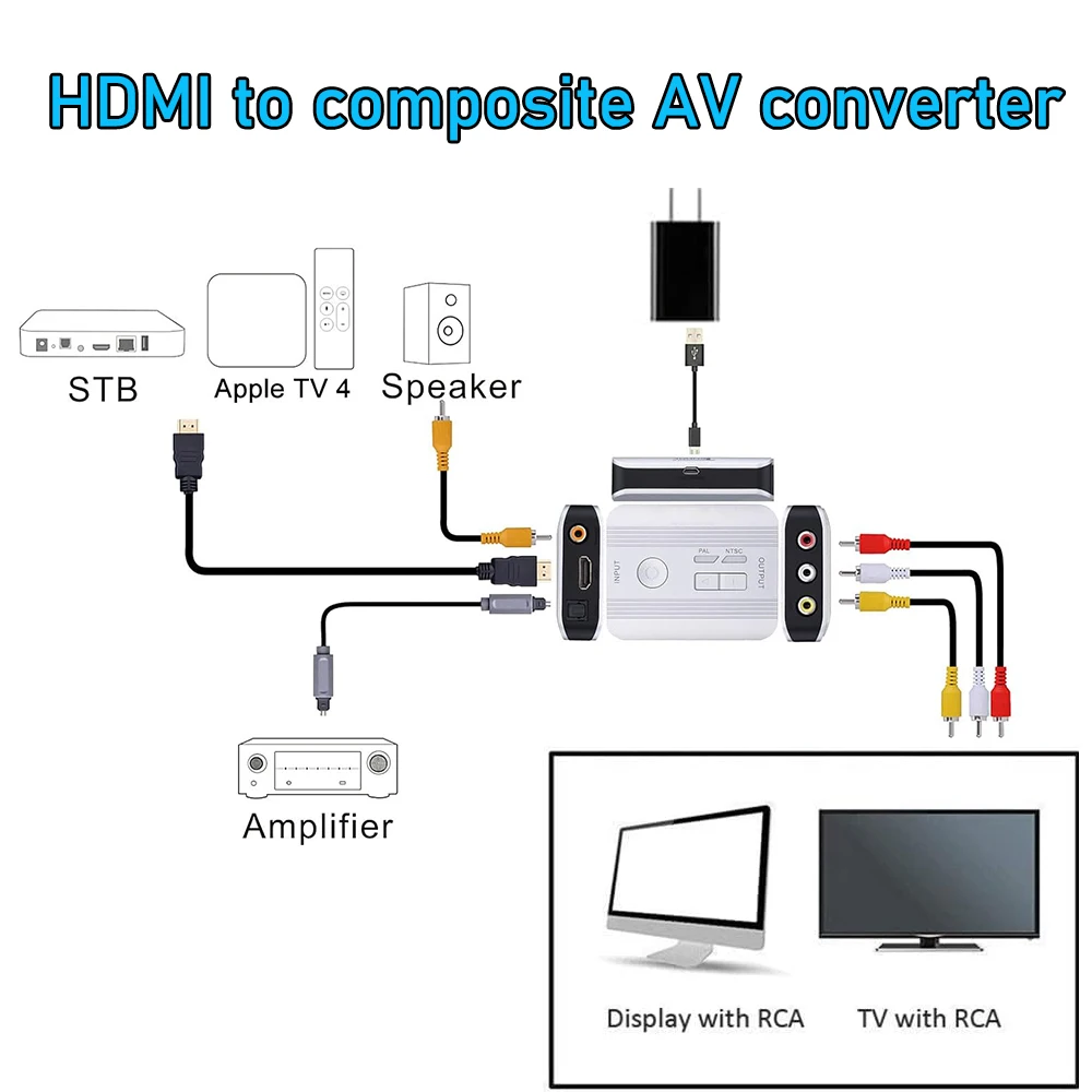Comprar Convertidor de HDMI a AV con toslink, adaptador de audio HDMI2AV a cable AV compuesto RCA para PS5, PS4, TV box, Xbox a RCA