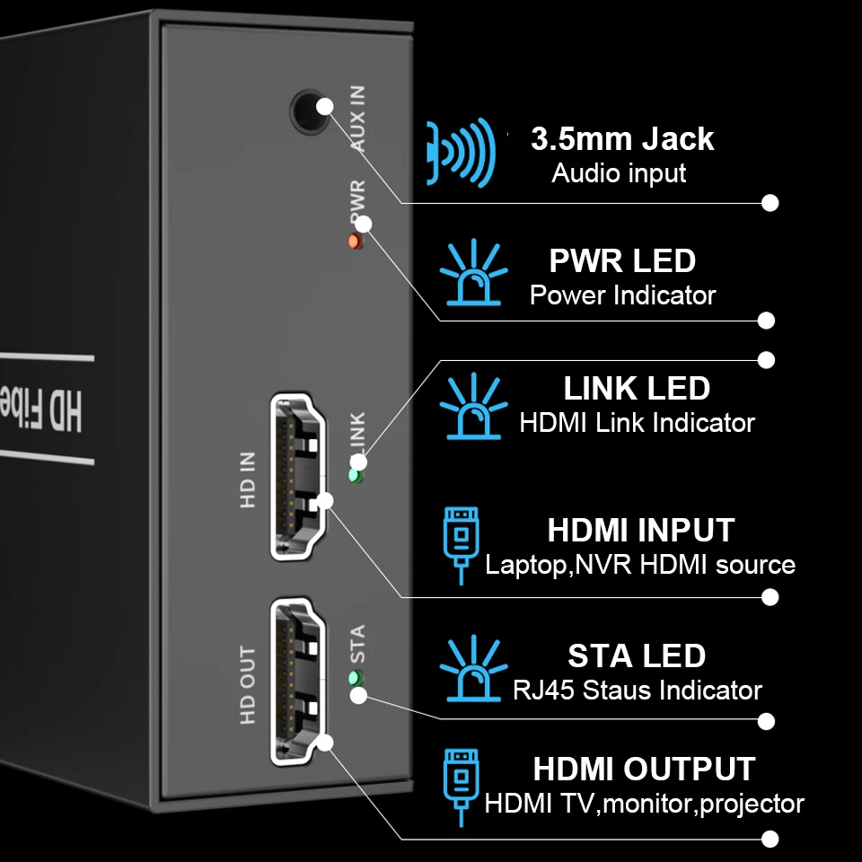 (1) The Black color is ZY-DT242F,HDMI 1.3 and HDCP 1.2,20km HDMI Fiber optic converter extender with loop out & 3.5mm jack stereo audio. (2) The Red color is ZY-DT241F,HDMI 1.3 and HDCP 1.2,20km HDMI Fiber optic converter extender with KVM control,loop out & 3.5mm jack stereo audio.Features:
