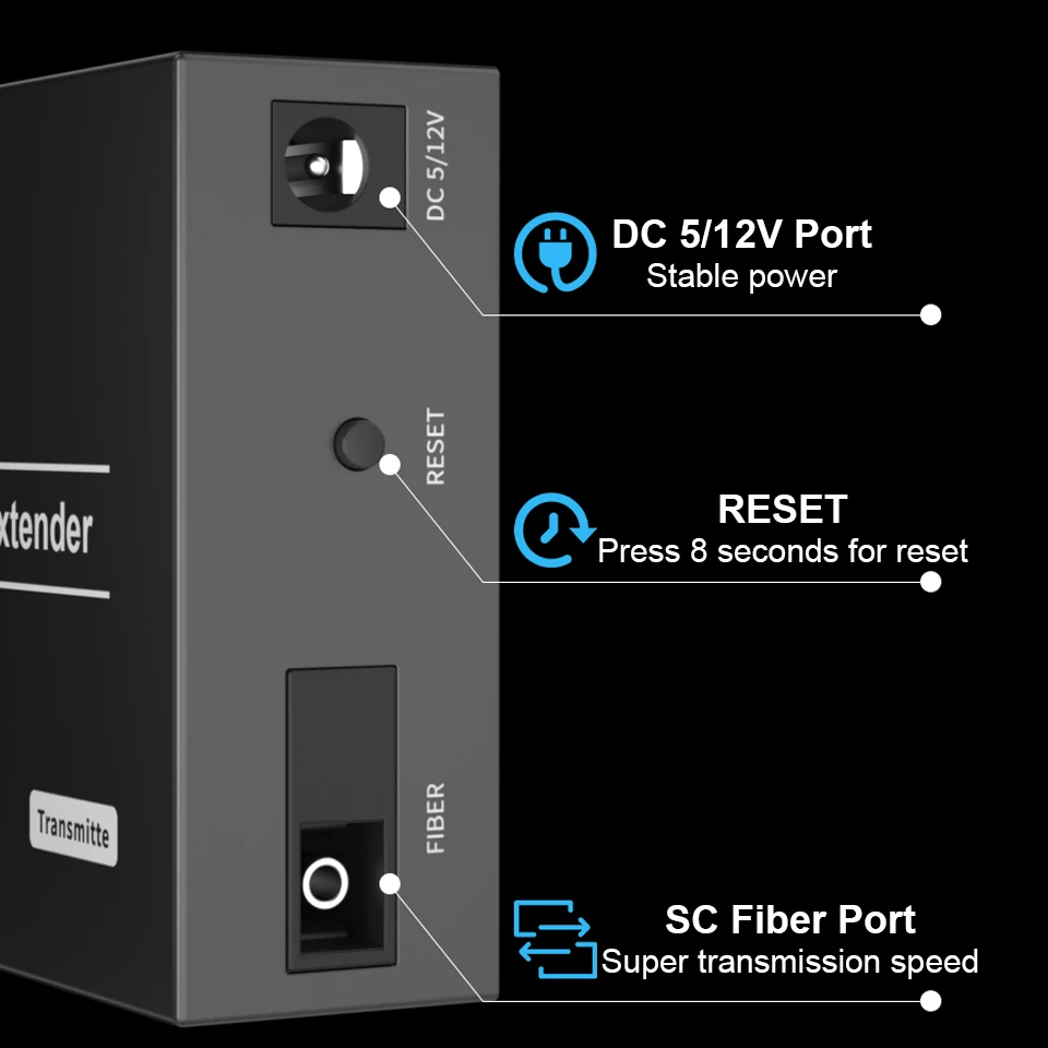 Long range transmission:up to 20 km over a single-mode SC fiber optic cable;
