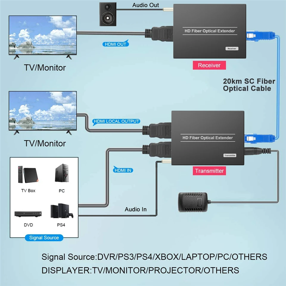 Comprar Convertidor de HDMI a fibra óptica, extensor de vídeo de fibra óptica, 2022 P, KVM, USB Loop a HDMI, receptor transmisor, 1080