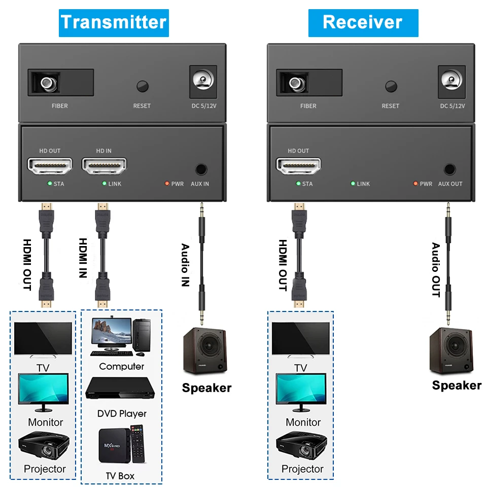 HDMI extender Fiber transmitter ……………………1 pcs