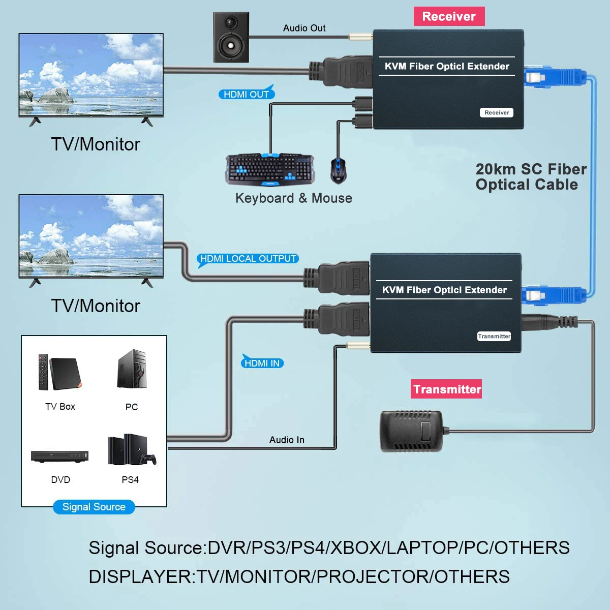 Comprar Convertidor de HDMI a fibra óptica, extensor de vídeo de fibra óptica, 2024 P, KVM, USB Loop a HDMI, receptor transmisor, 1080