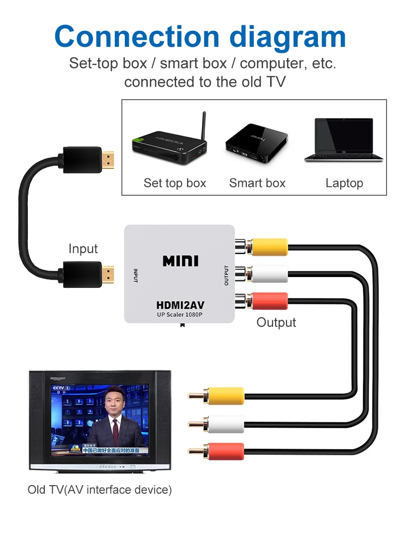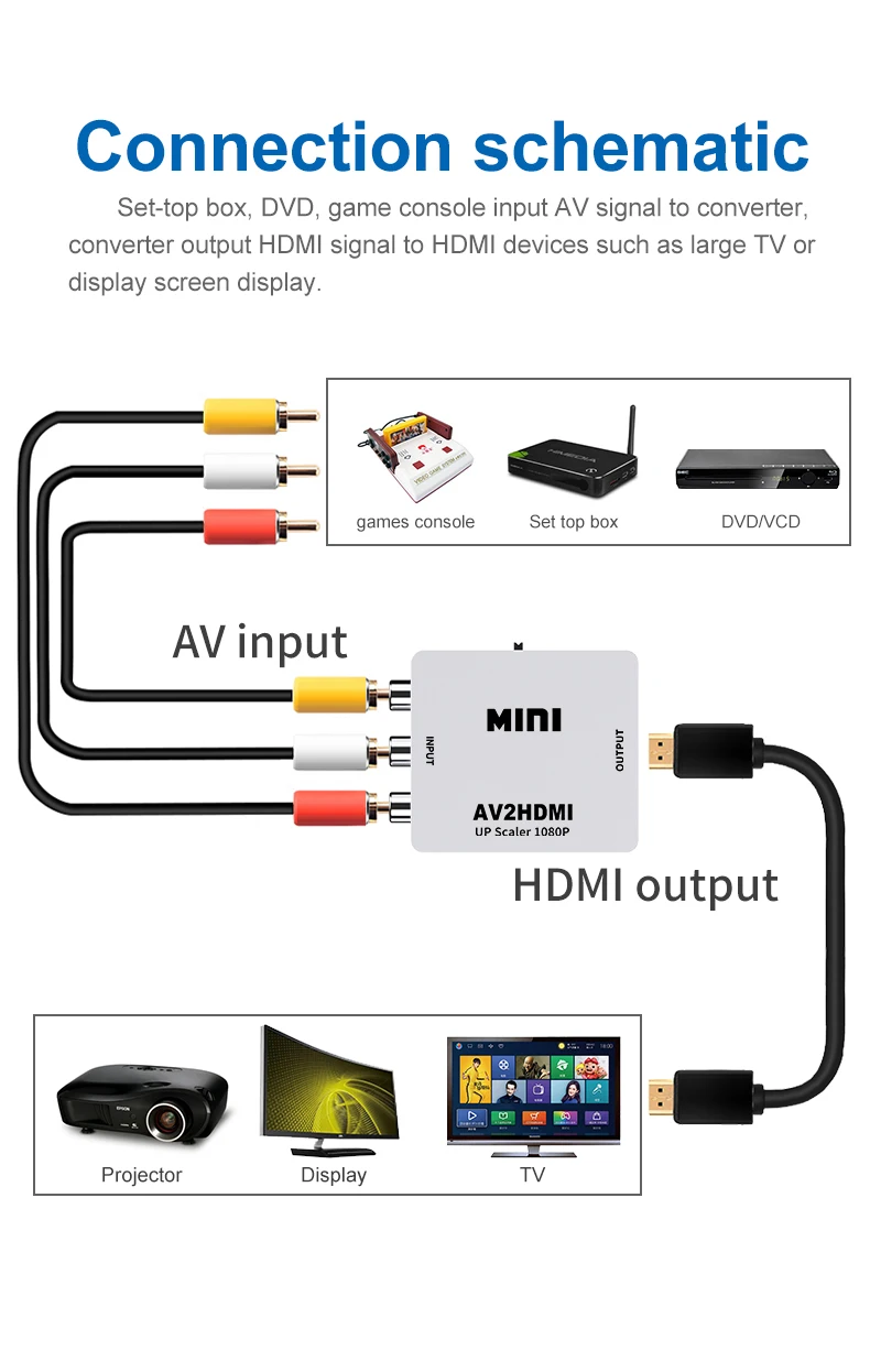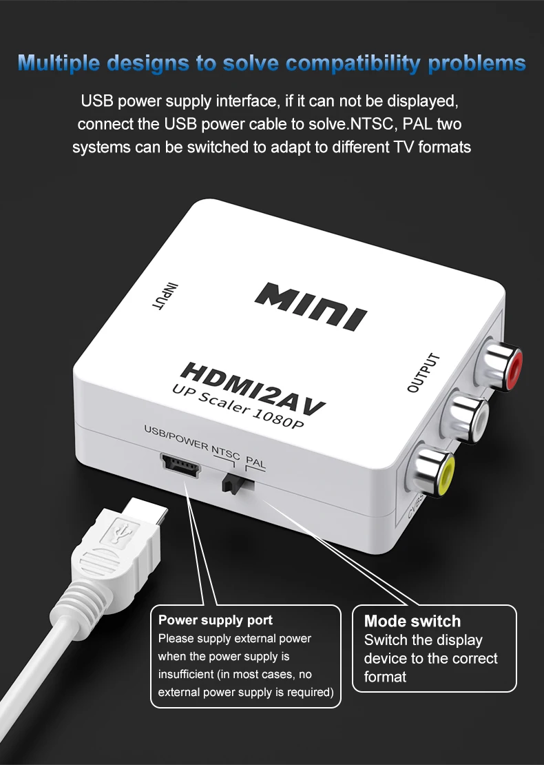 Comprar Convertidor HDMI a RCA de 1080P, caja de vídeo AV/CVSB, adaptador AV a HDMI, compatible con salida NTSC PAL, convertidor de vídeo HDMI a VGA
