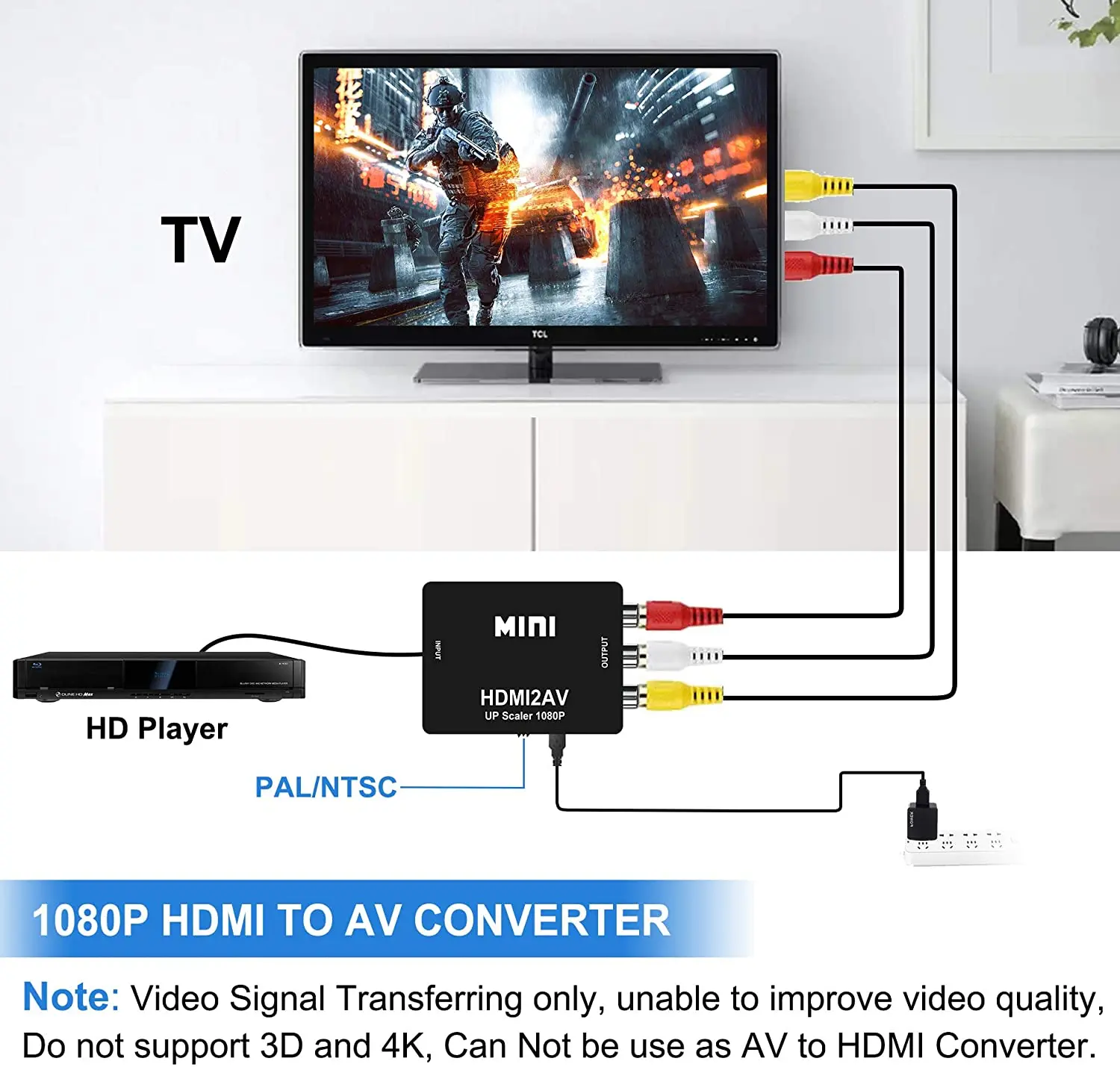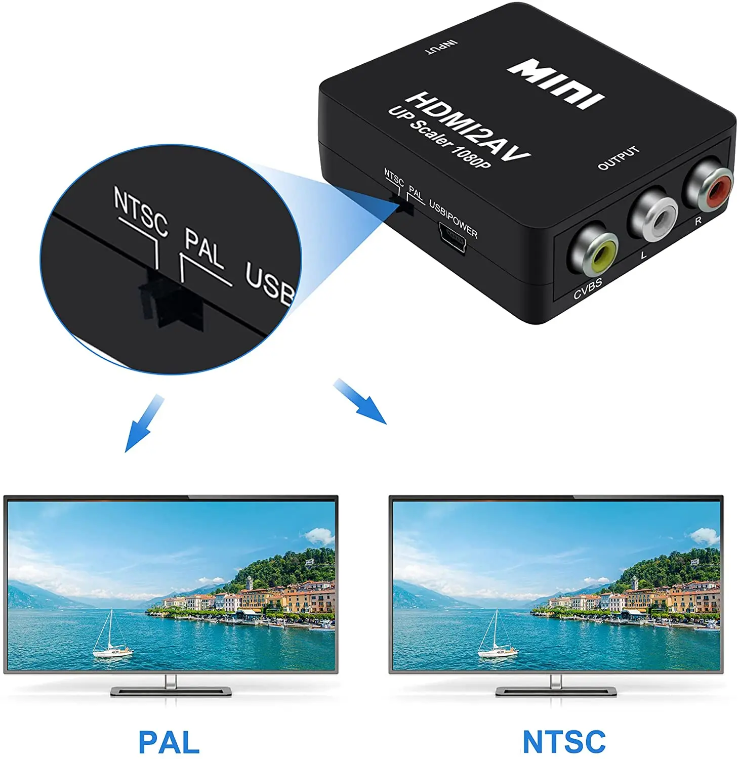 Comprar Convertidor HDMI a RCA AV/CVSB L/R, caja de vídeo HDMI2AV 1080P, adaptador HDMI a AV para PC, portátil, CRT, TV, soporte NTSC PAL