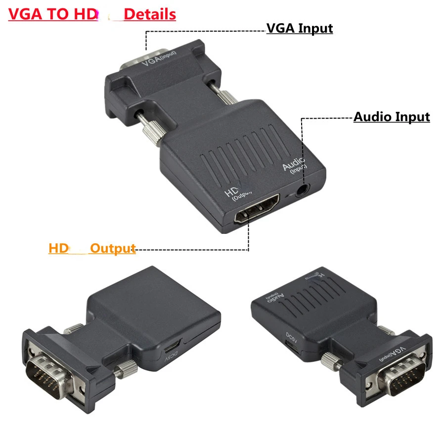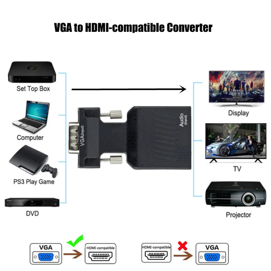Comprar Convertidor HDMI compatible a VGA con Cable de Audio de 3,5mm para PS4, PC, portátil, TV, Monitor, proyector, 1080P, VGA hembra a HD macho Adapt