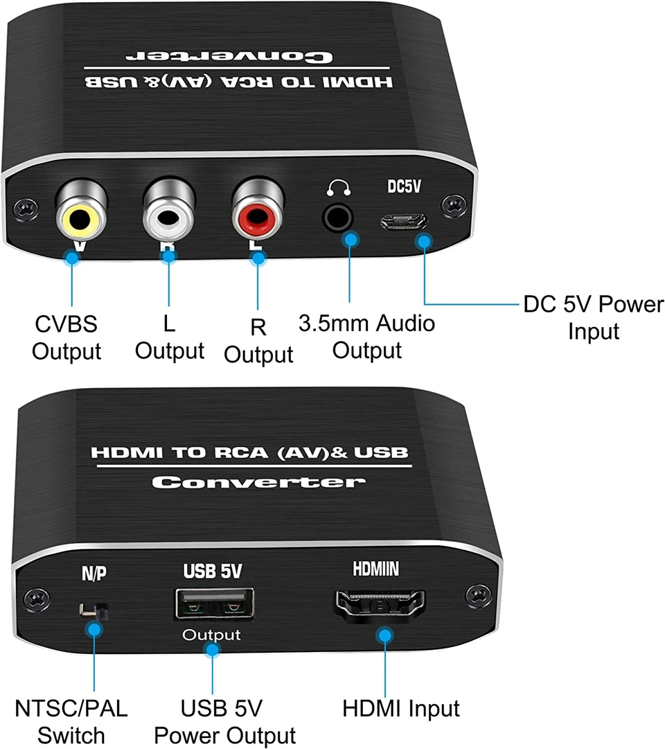 El convertidor de Audio HDMI a RCA admite dos formatos de salida PAL y NTSC con un interruptor de selección, generalmente NTSC para América, PAL para otros países