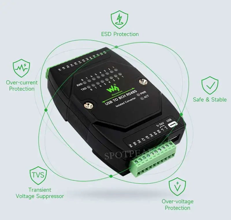 [] Admite USB a 8 canales RS485, conveniente para ampliar múltiples dispositivos seriales industriales RS485