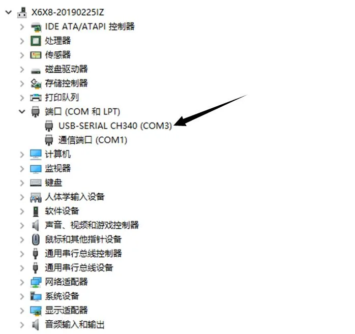 3. Cuando el ordenador está conectado a USB, el dispositivo de puerto serie USB en el Administrador de dispositivos mostrará (COM)
