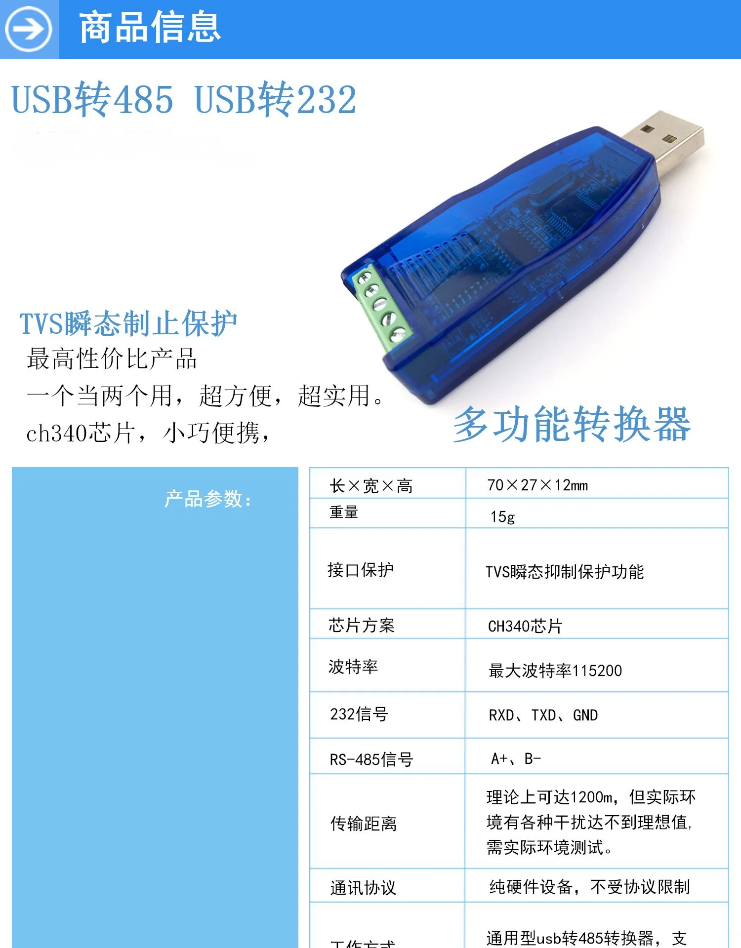 Protección industrial: protección contra supresión transitoria de televisores, protección electrostática ESD, protección contra sobretensiones, cortocircuito de línea de señal AB y protección contra cortocircuitos de la fuente de alimentación (el cortocircuito no se quema)