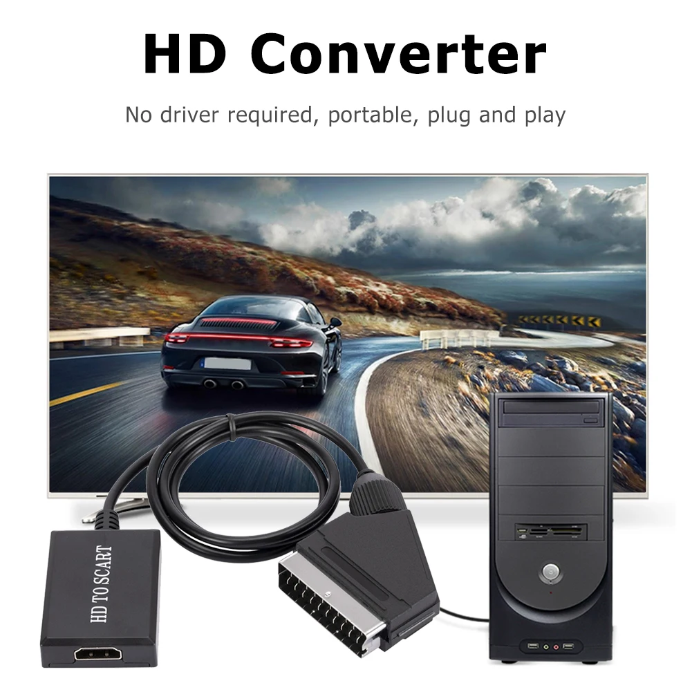 Comprar Convertidor inteligente portátil de SCART a HDMI, adaptador de Audio y vídeo con interruptor 720P/TV HD 1080P para, accesorios para DVD