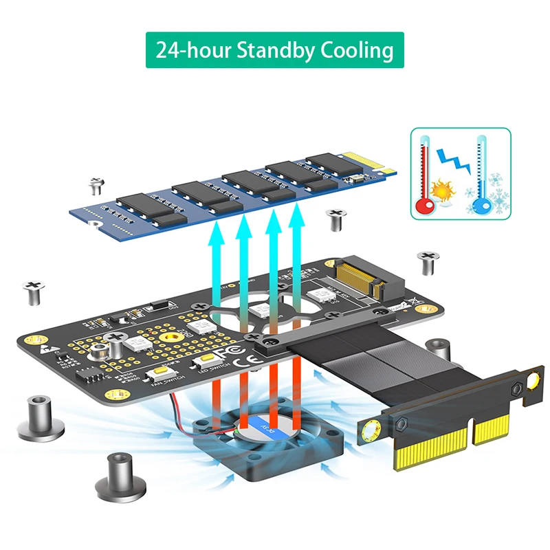 4. El ventilador de enfriamiento está diseñado para el modo de enfriamiento activo, el calor SSD se puede descargar a tiempo.