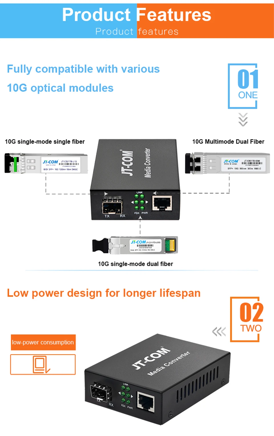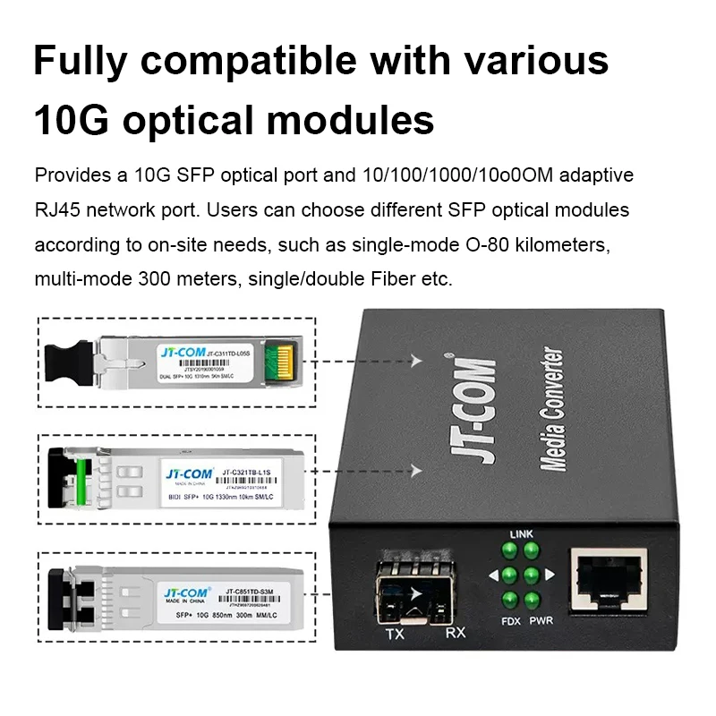 Comprar Convertidor de medios de fibra a RJ45, transceptor Ethernet de 10G, SFP +, 10/100/1000M/10G, Compatible con Cisco