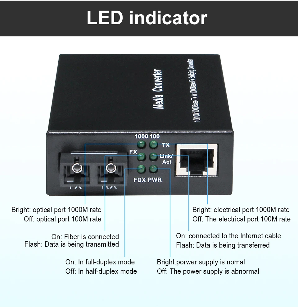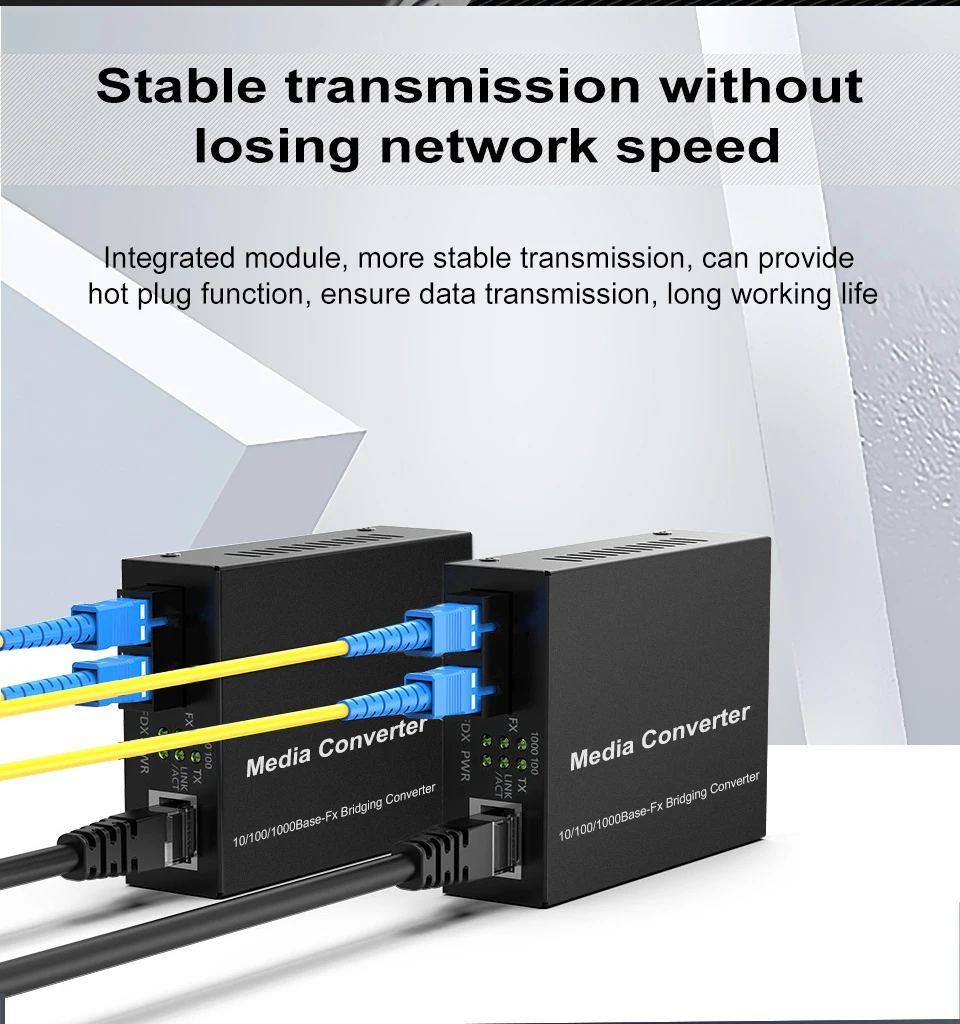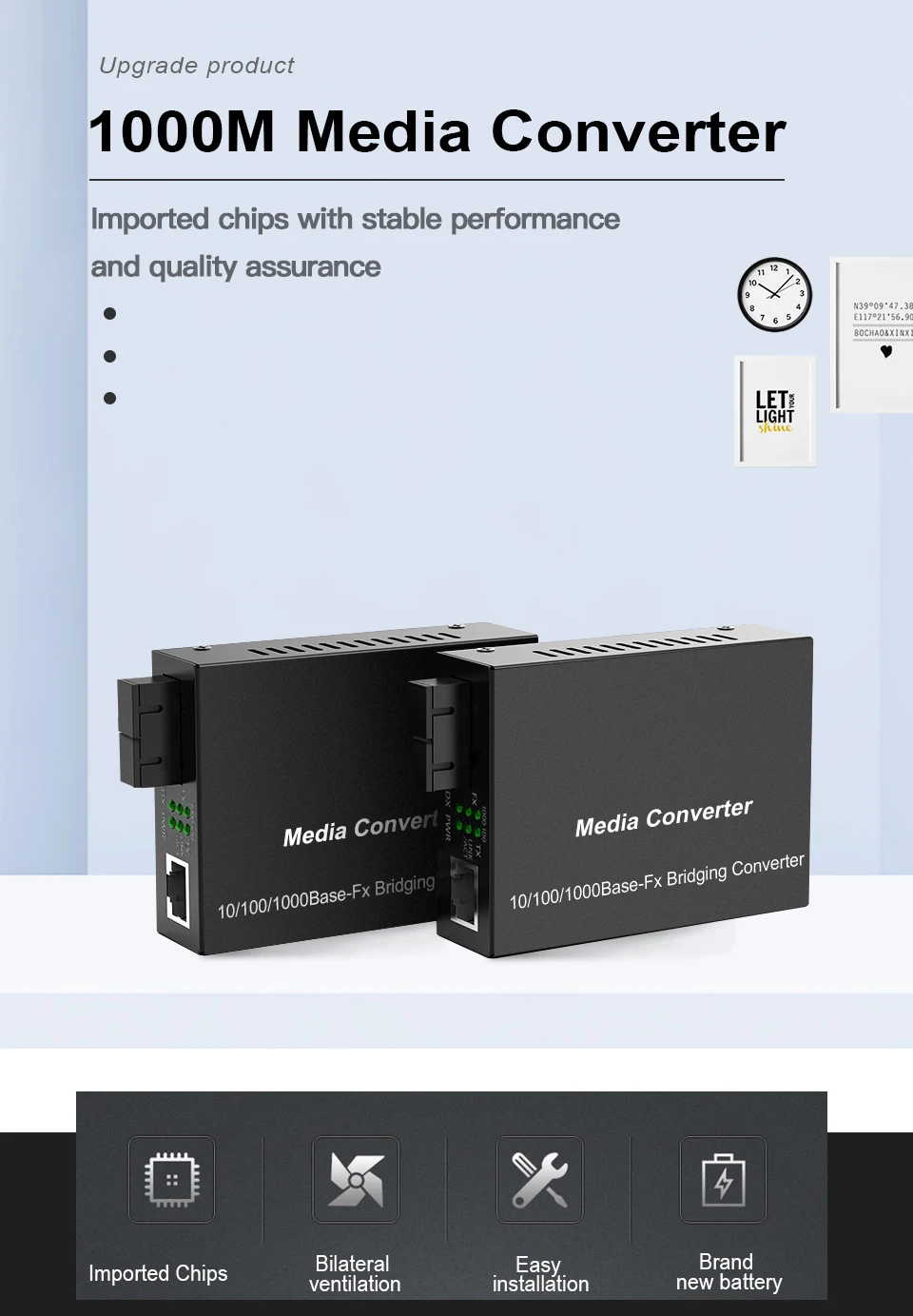Comprar Convertidor de medios de fibra Gigabit Ethernet con transceptor SC multimodo integrado de 1Gb, 10/100/1000M, RJ45 a 1000Base-LX, hasta 2km