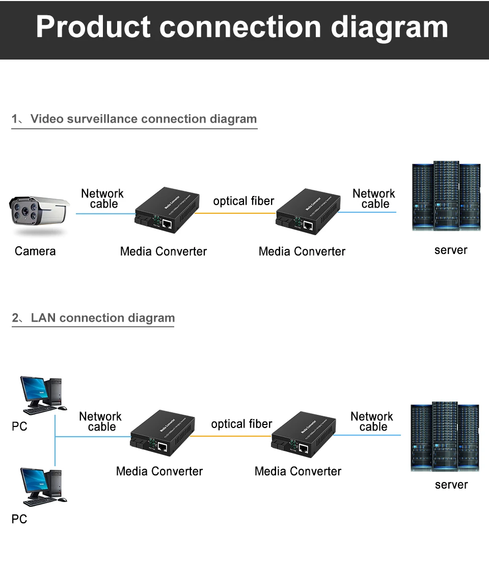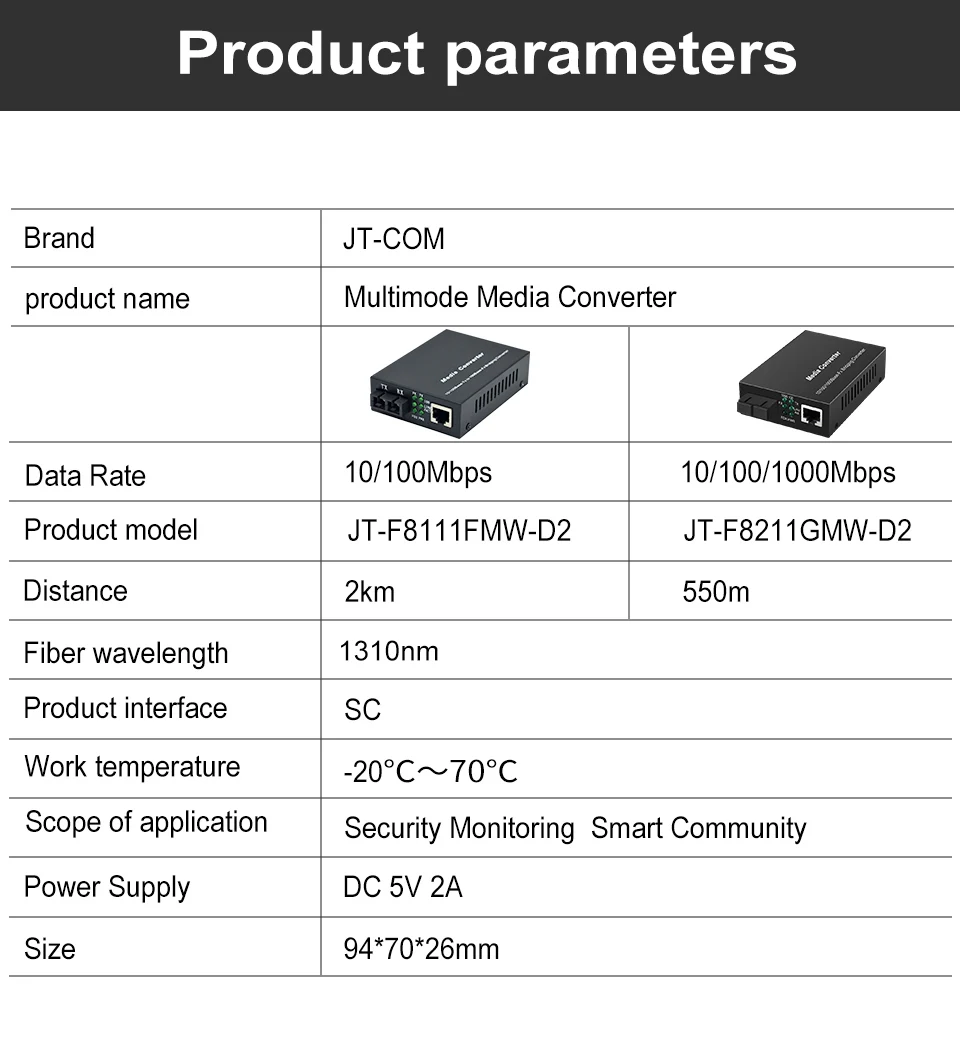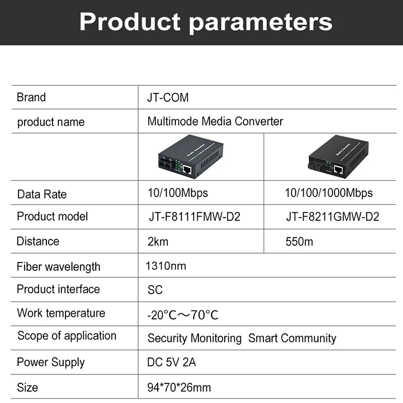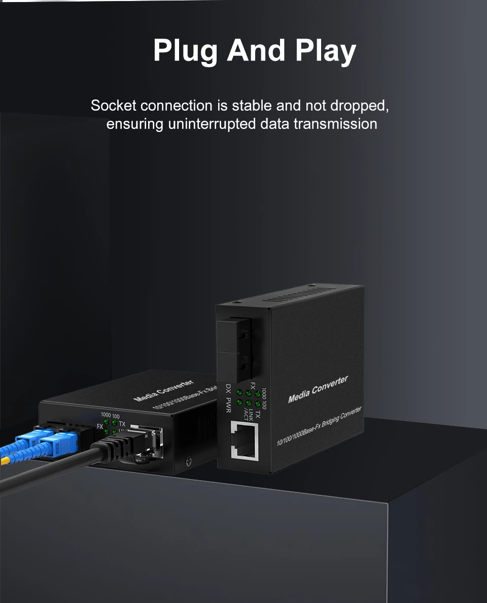 Comprar Convertidor de medios de fibra Gigabit Ethernet con transceptor SC multimodo integrado de 1Gb, 10/100/1000M, RJ45 a 1000Base-LX, hasta 2km