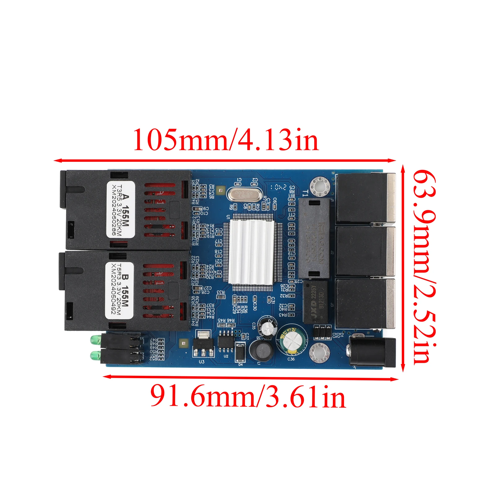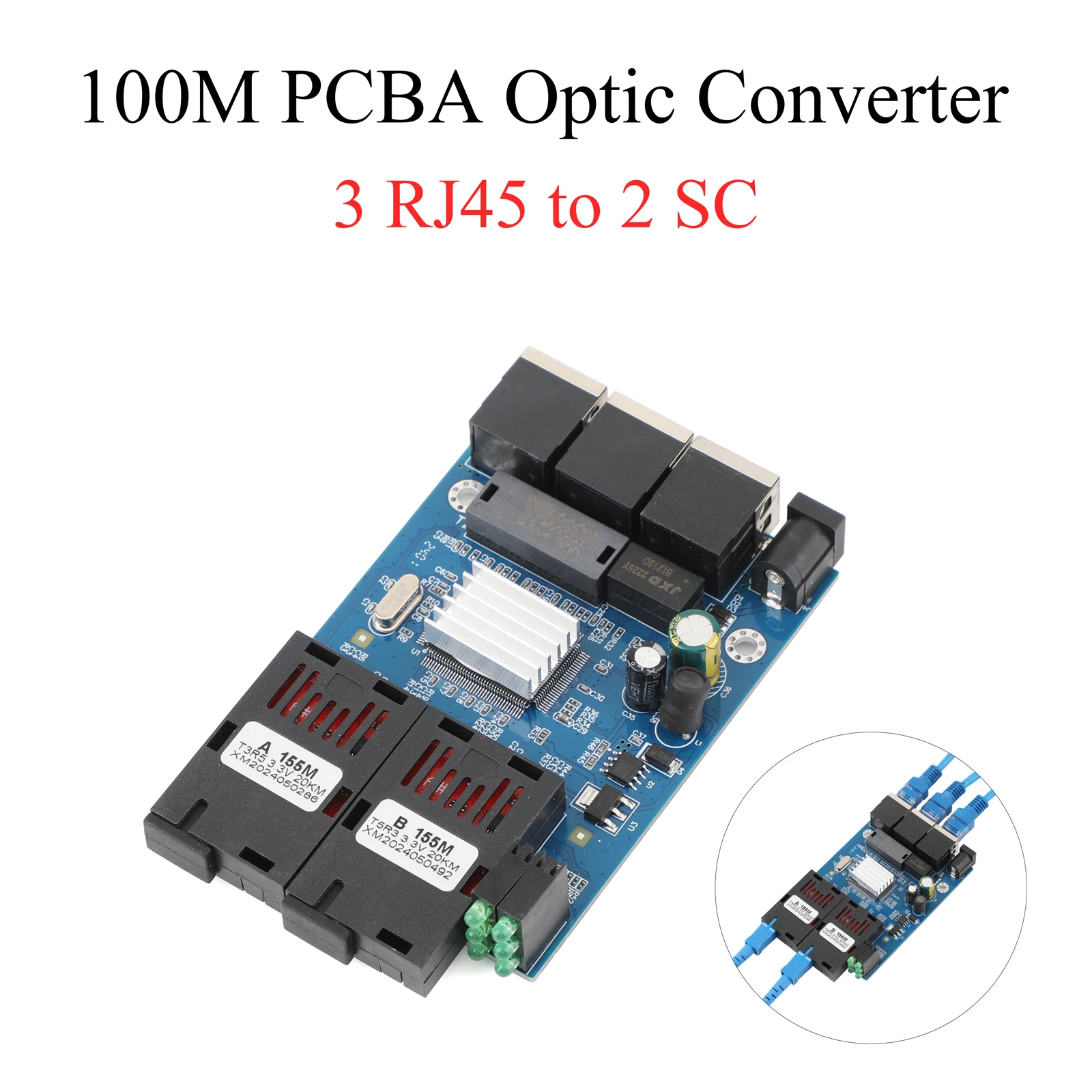 Convertidor de medios de fibra óptica, 10M/100M, 2 SC a 3 RJ45 A + B, conector óptico, puertos de 1310nm/1550nm, placa PCBA, interruptor Ethernet de 20KM