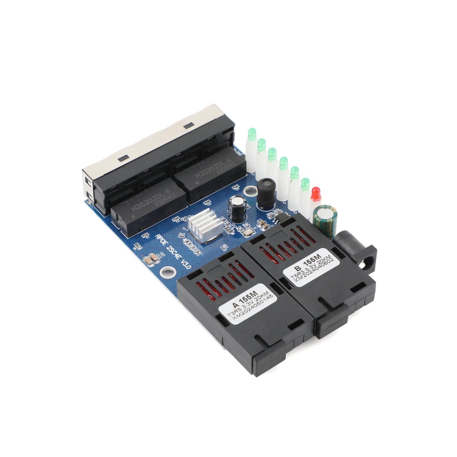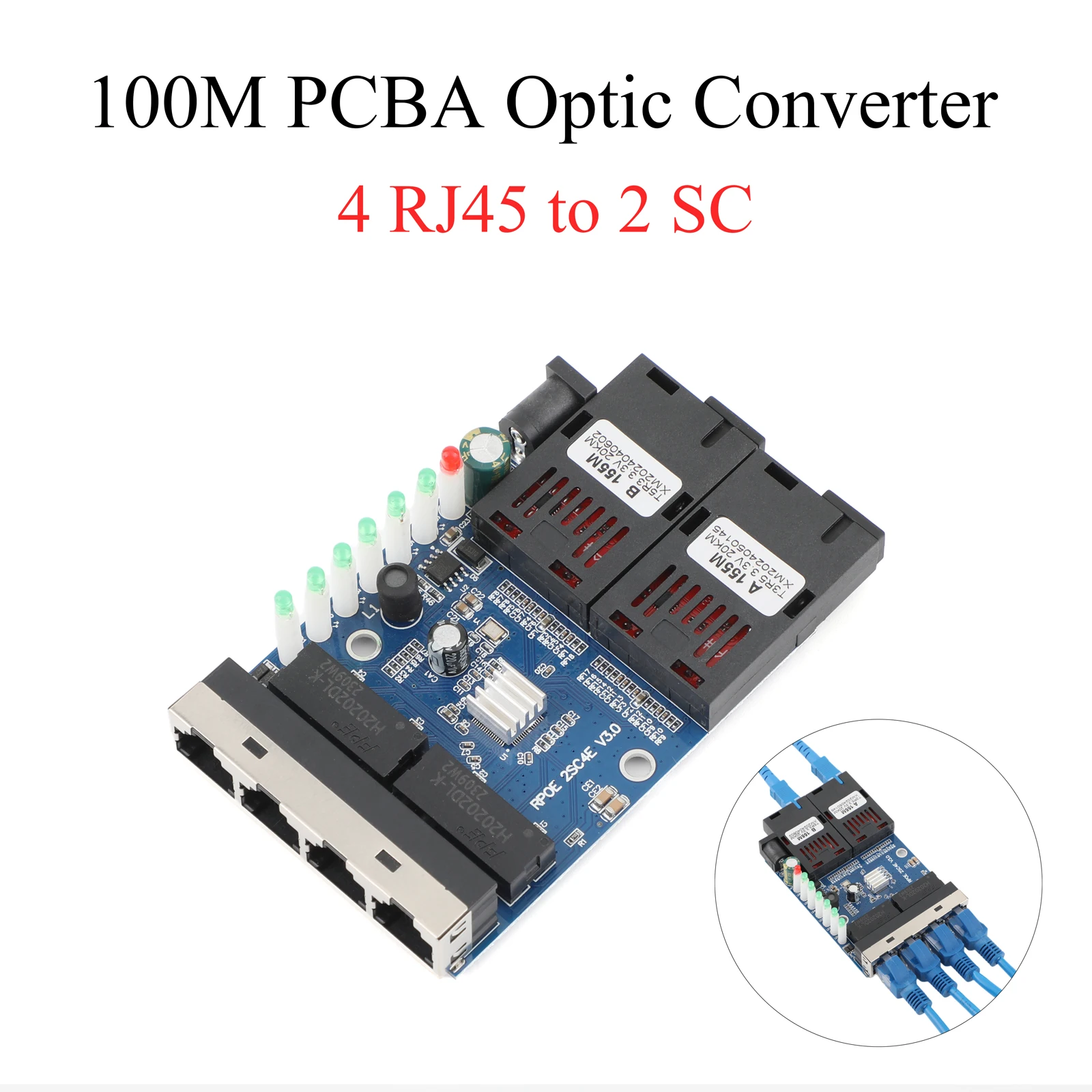 Convertidor de medios de fibra óptica de 10M/100M 4 RJ45 a 2 SC A + B conector óptico 1310nm/1550nm puertos placa PCBA 20KM interruptor Ethernet azul