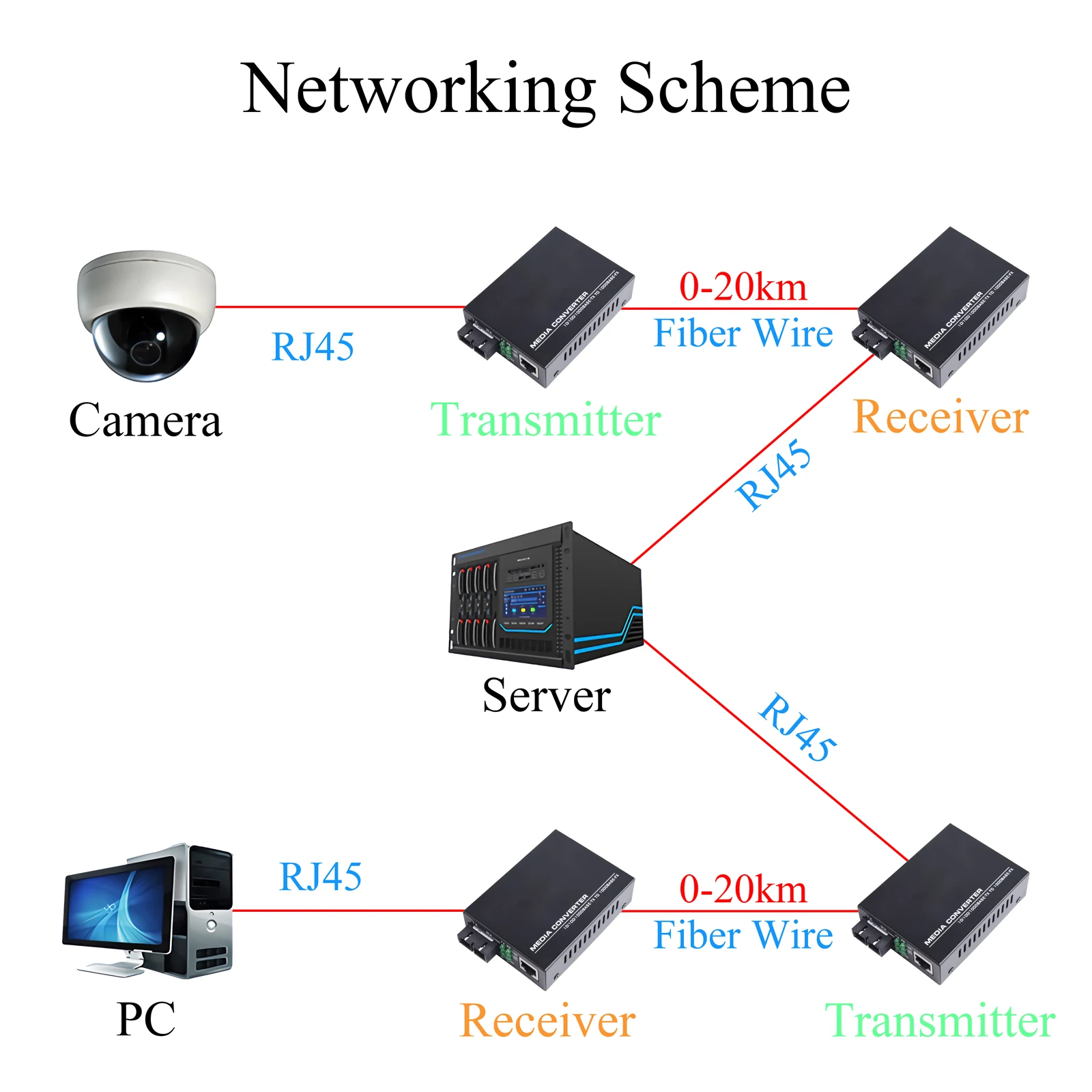 Los convertidores de medios Gigabit Ethernet con una fuente de alimentación externa están diseñados para transmitir y recibir datos de 10/100/1000Mbps a través de fibra óptica.