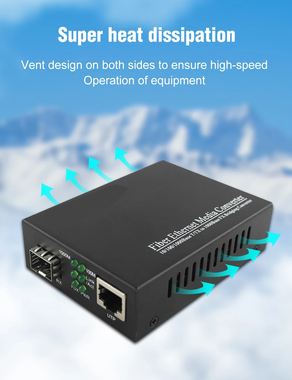 Convertidor de medios Gigabit SFP, módulo transceptor de 100/1000Mbps, Ethernet rápida sfp a rj45, convertidor ethernet, 1 interruptor SFP de fibra, 1RJ45